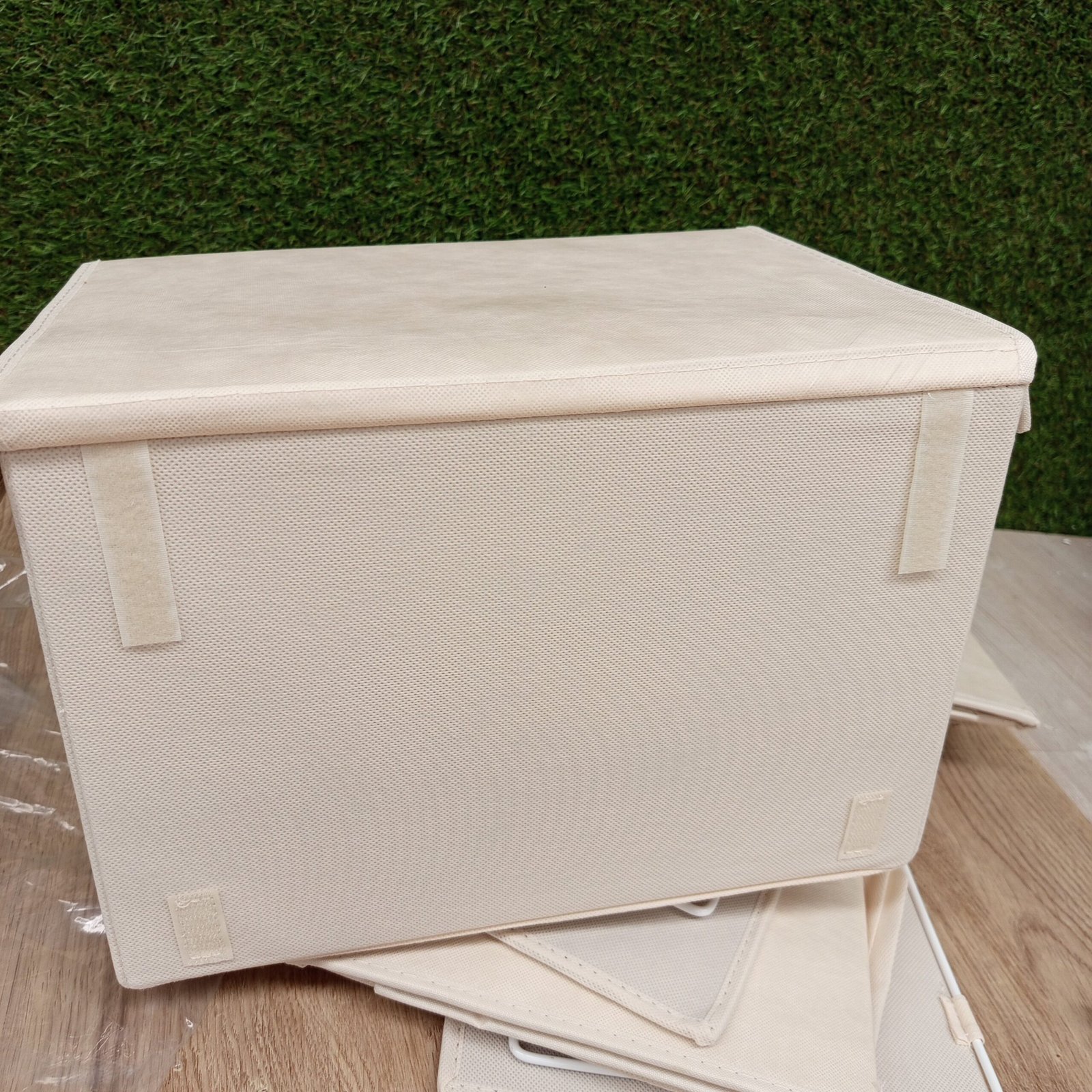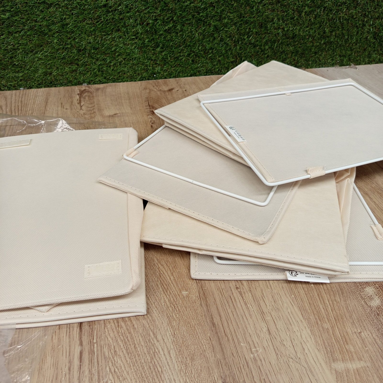 Puedes apilar estas cajas para ahorrar espacio. Con una estructura de metal, los cubos no se doblan. Los cierres de gancho y bucle en la parte posterior conectan las cajas para darles estabilidad