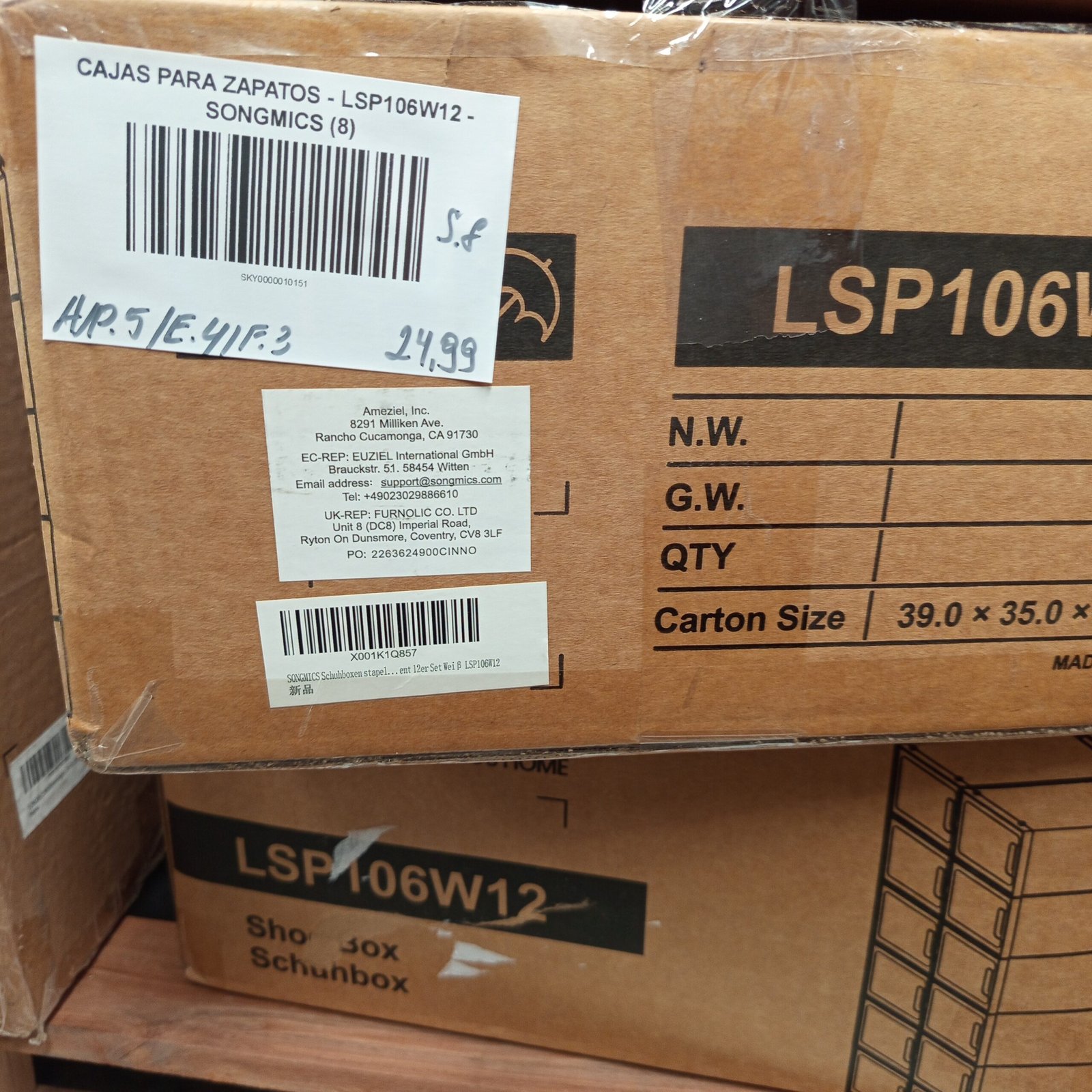 SONGMICS Cajas para Zapatos Transparentes, 12 Cajas de Zapatos, Robusta, Organizadores Plegables, Talla 44, Apilables, para Exponer Zapatillas, Tacones Altos, Transparente y Blanco LSP106W12