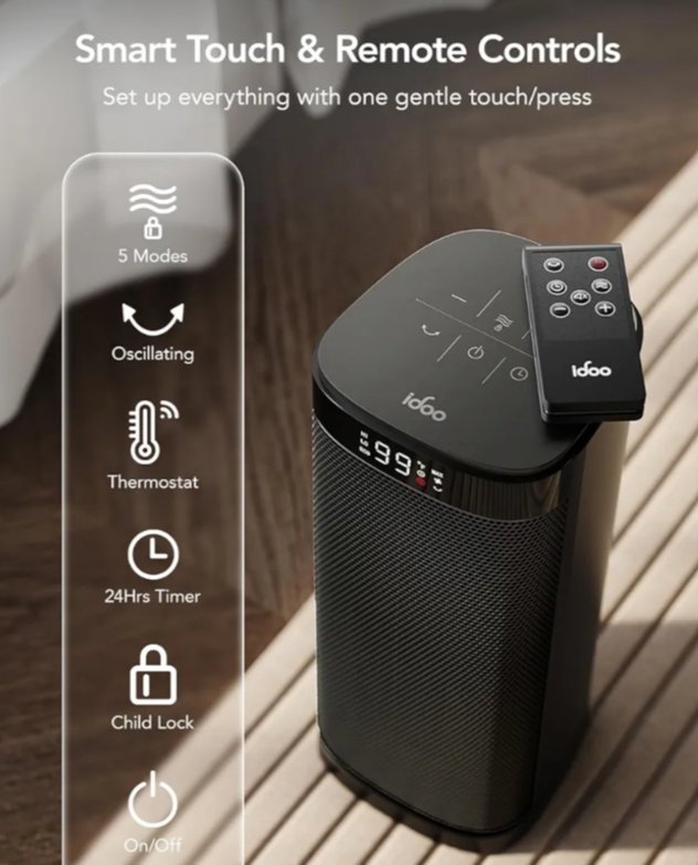 Calefactor Bajo Consumo 2000W, ECO Calefactor Electrico PTC Portátil con control remoto, 24hr Temporizador, 70° oscilación, Protección contra sobrecalentamiento y vuelco, uso en interiores- Gris Características Especiales Control remoto, Protección contra el sobrecalentamiento, Temporizador de encendido/apagado, Termostato electrónico