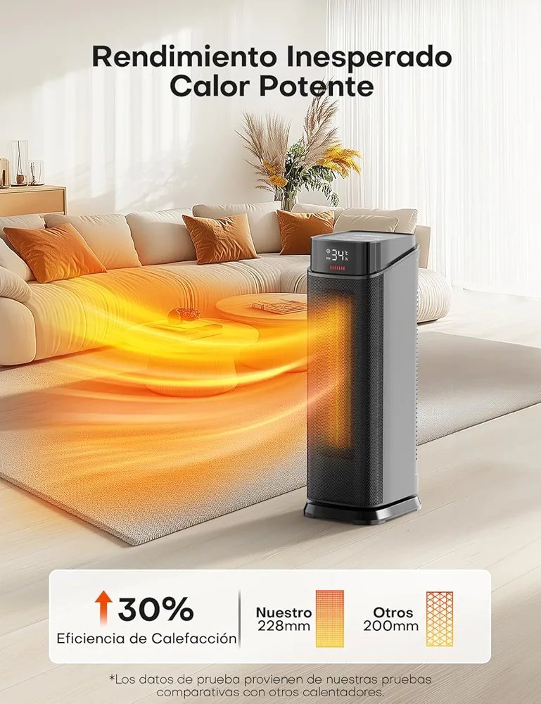 Calefactor Bajo Consumo, 2000W PTC Calefactor Ceramico con 4 Modos, Modo ECO, 90° Oscilación, Temporizador 24H, Control Remoto, Potente, Protección contra Sobrecalentamiento y Vuelcos, Hogar
