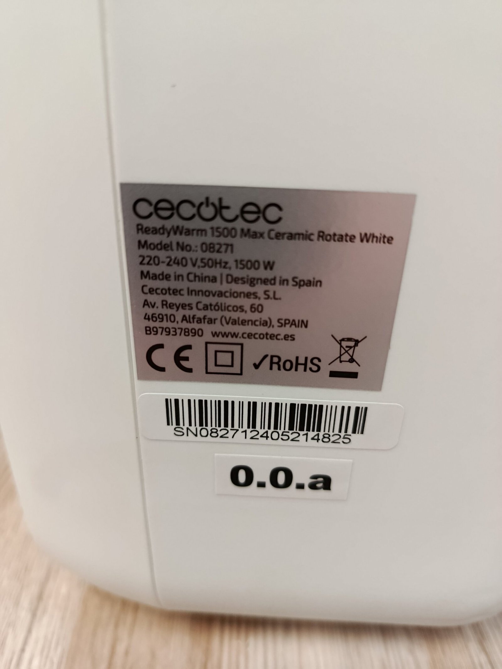 Cecotec Calefactor Cerámico de Sobremesa ReadyWarm 1500 Max Ceramic Rotate White, 1500 W, Oscilación, Termostato Regulable y 3 Modos de Funcionamiento, Área de Cobertura de 15m2