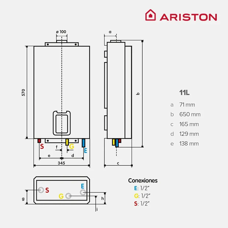 Ariston Next Evo X – Calentador de Agua 11L/min Bajo Consumo Calentador Gas Natural Estanco y Termostático Tecnología Low Nox, 16.5×34.5×65 Fabricado para Instalación España, Eficiencia A Rango (A+/F)