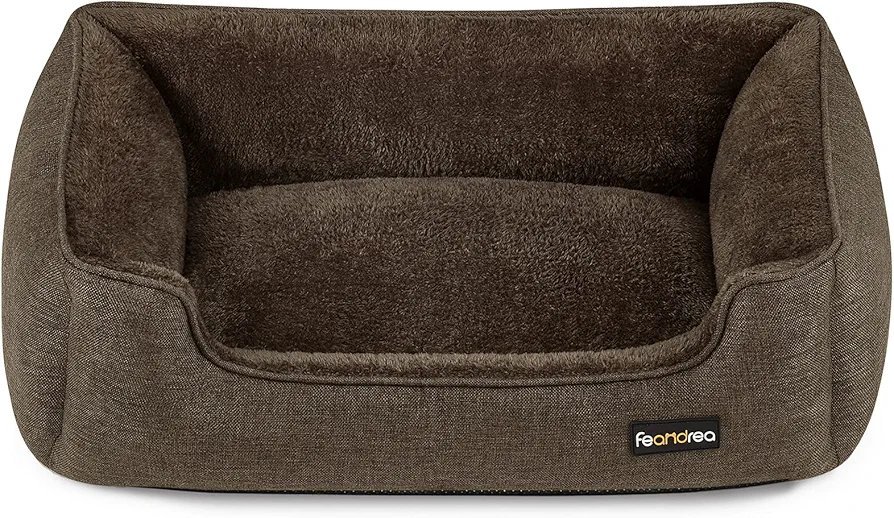 Feandrea Cama para Perros, Sofá de Lino para Mascotas, Bordes Elevados, Fondo Antideslizante, Funda Extraíble para Lavado, Tamaño M para Perros Pequeños, 70 x 55 x 21 cm, Marrón PGW10CC