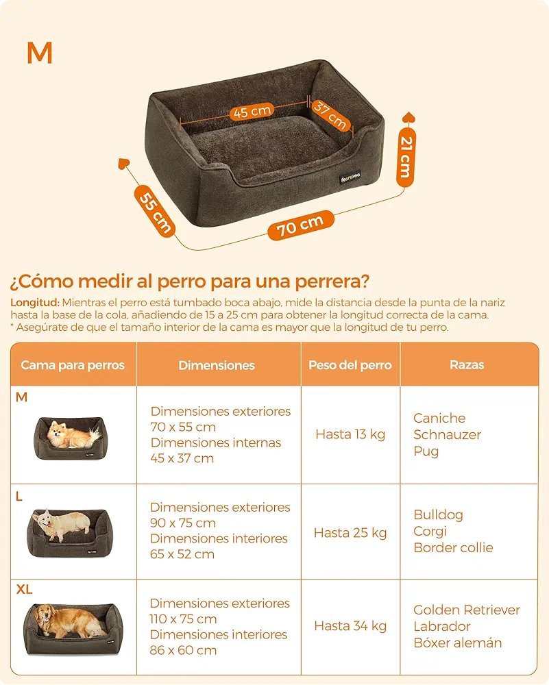 Los bordes elevados de la cama sostienen la cabeza y el cuello de tu mascota, creando una sensación de seguridad que facilita que tu mascota encuentre la posición más cómoda para dormir