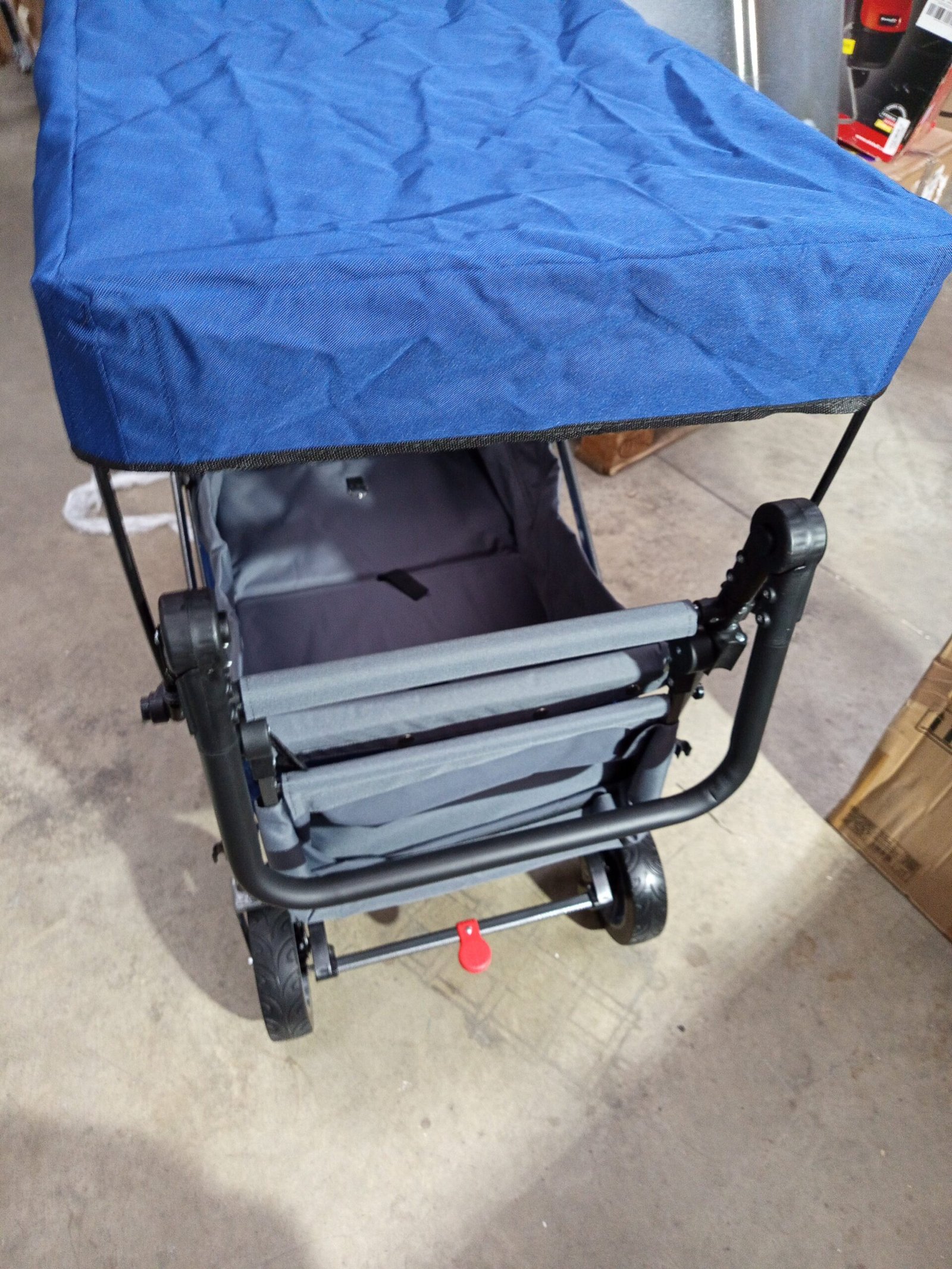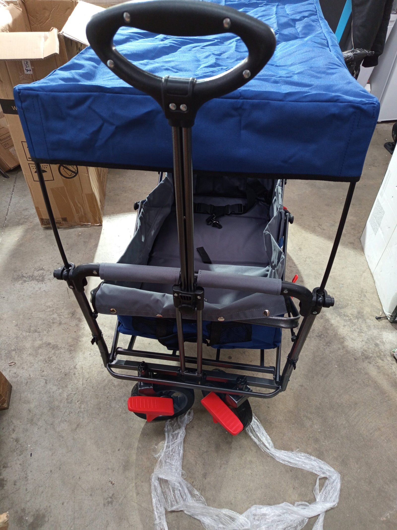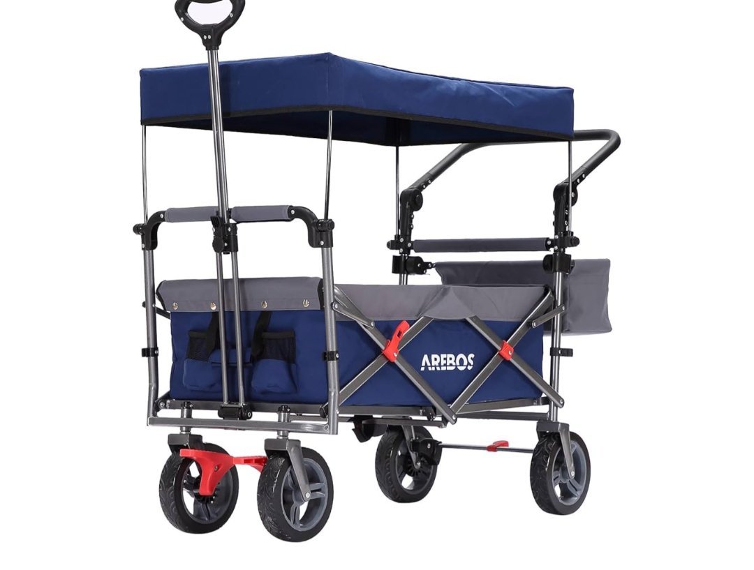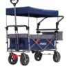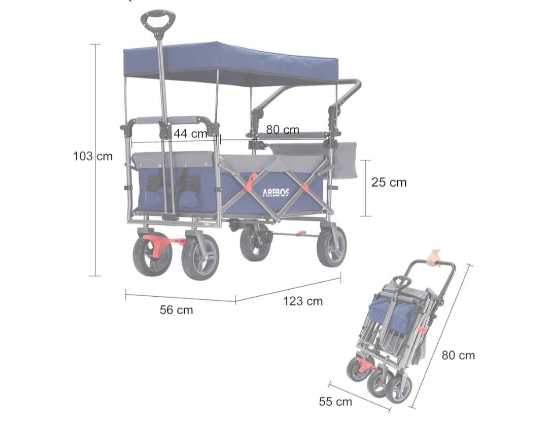 Carretilla plegable Arebos Premium con techo | Carretilla de transporte hasta 100 kg | Plegable con frenos delanteros y traseros | Azul