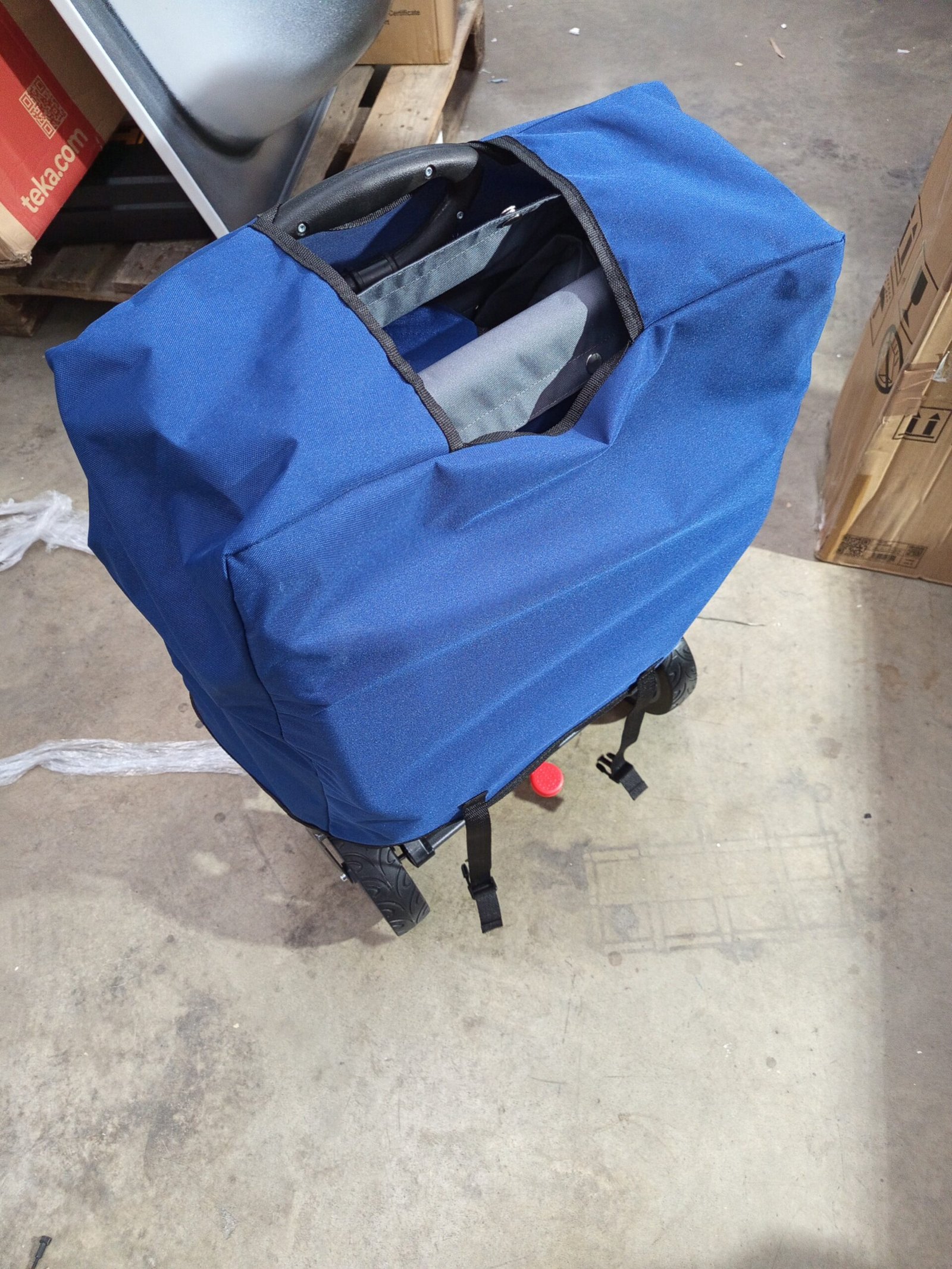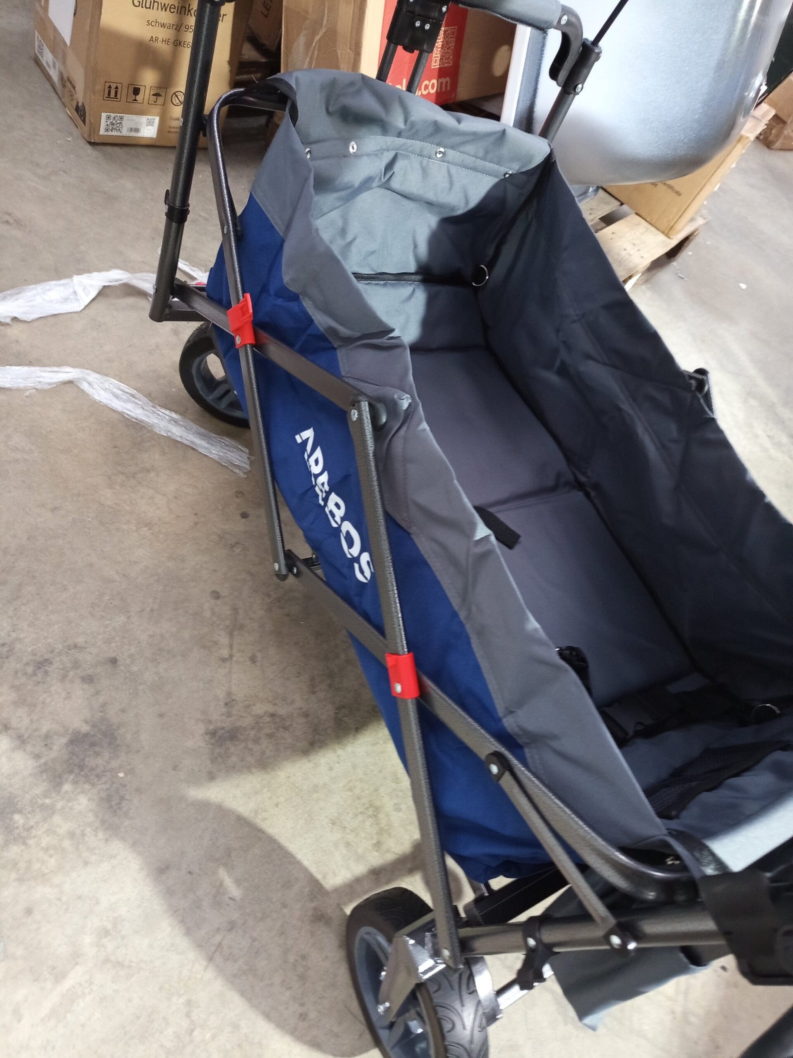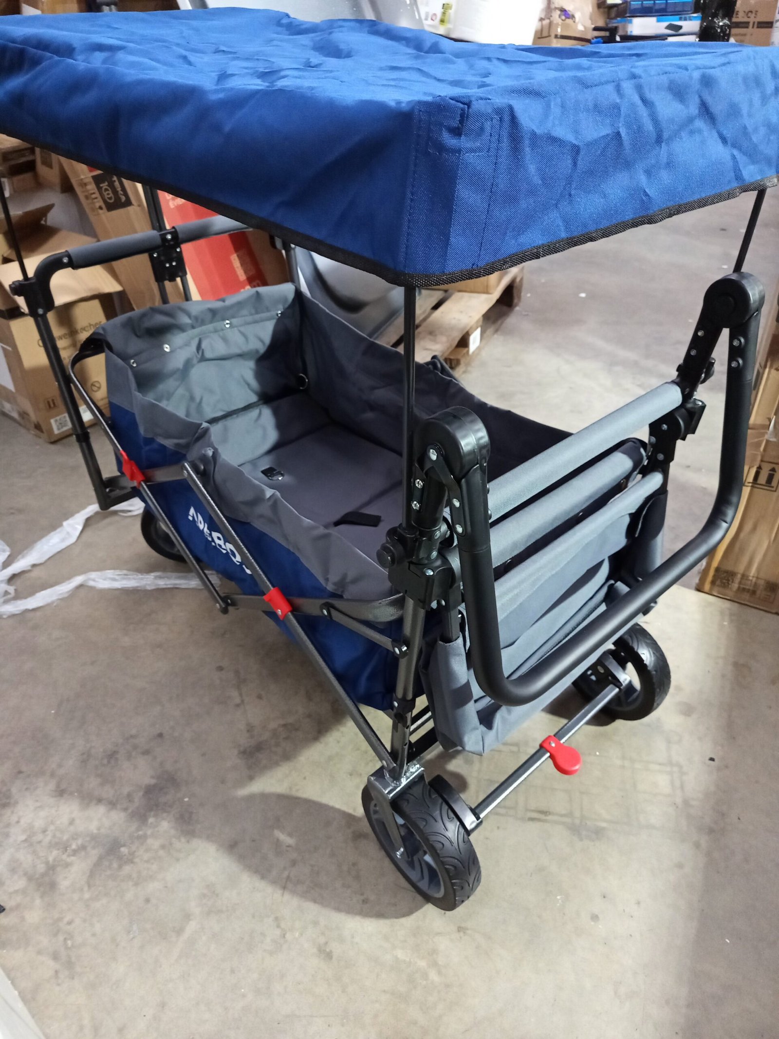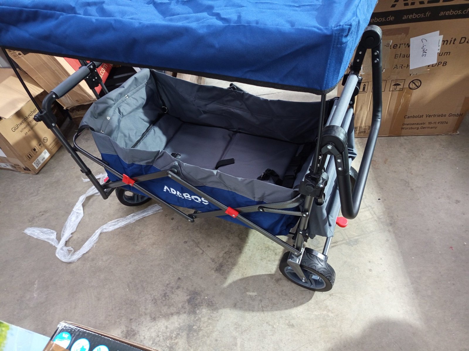 Carretilla plegable Arebos Premium con techo | Carretilla de transporte hasta 100 kg | Plegable con frenos delanteros y traseros | Azul