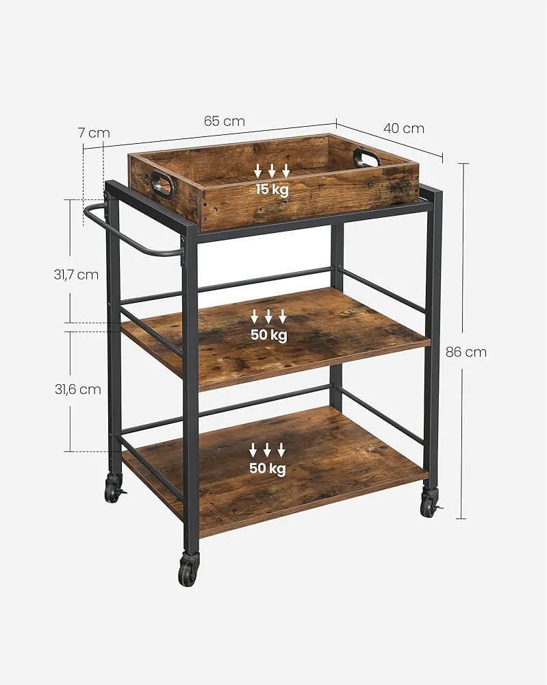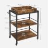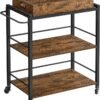 VASAGLE Carrito de Cocina, Carrito Auxiliar con Ruedas, con Bandeja Extraíble, Ruedas Universales, Marco de Acero, Estantería de Cocina, 40 x 72 x 86 cm, Marrón Rústico y Negro Tinta LRC72X