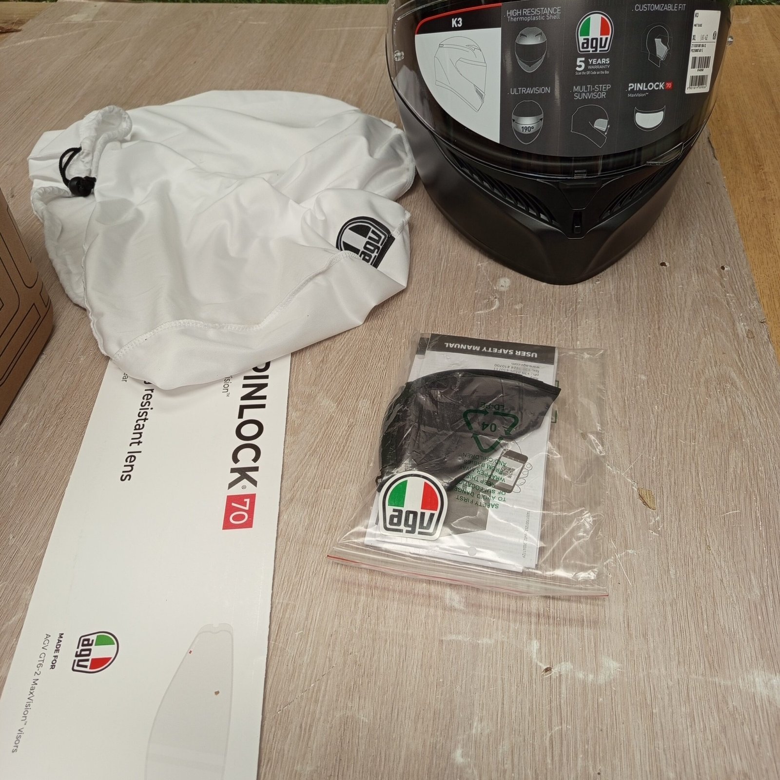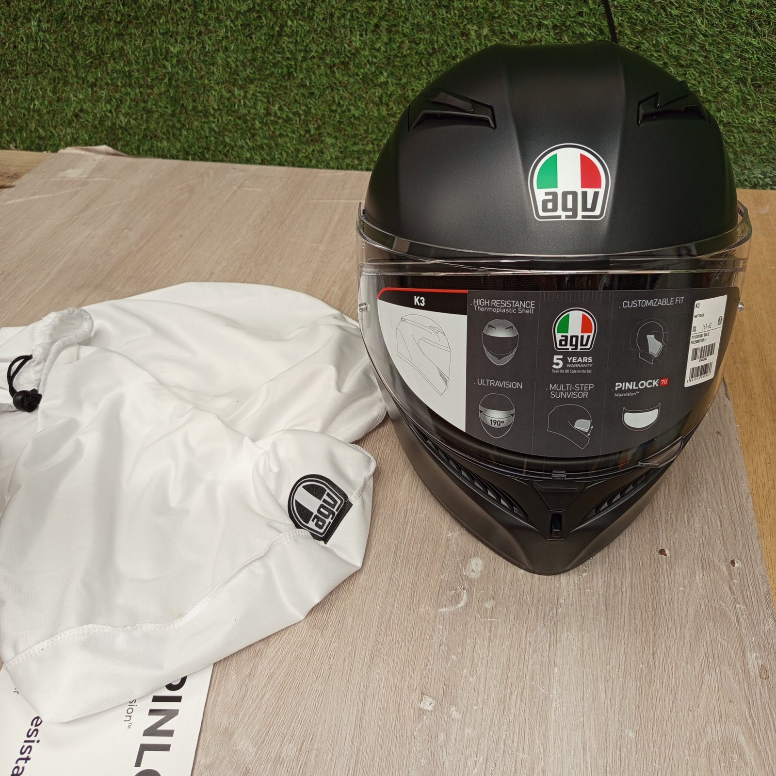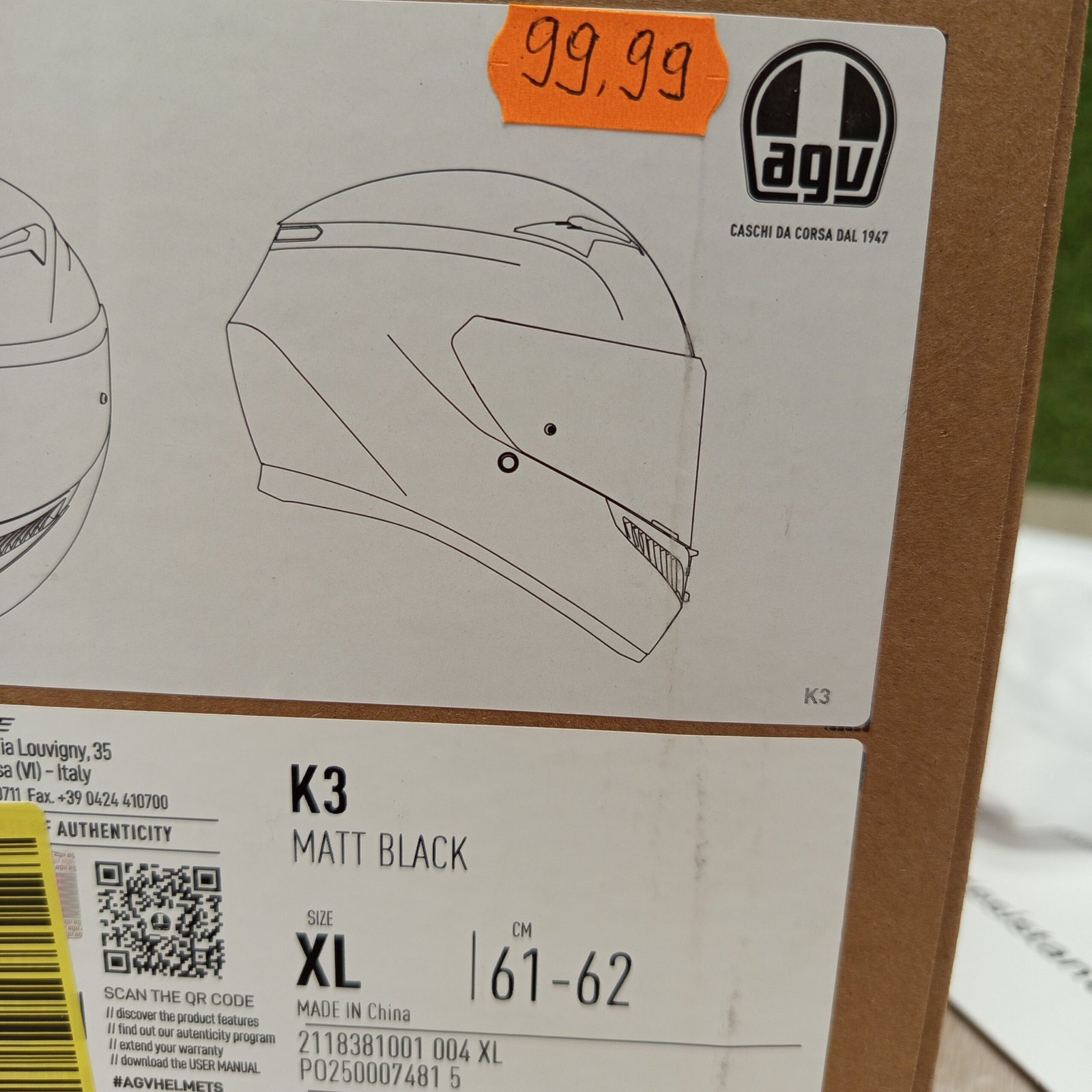 AGV – K3 E2206 MPLK, Casco Moto Hombre, Casco Integral ECE con Absorción del Sudor, Spoiler, Ventilación y Visera UV Resistente a los Arañazos, Intercomunicador Casco Moto, Negro