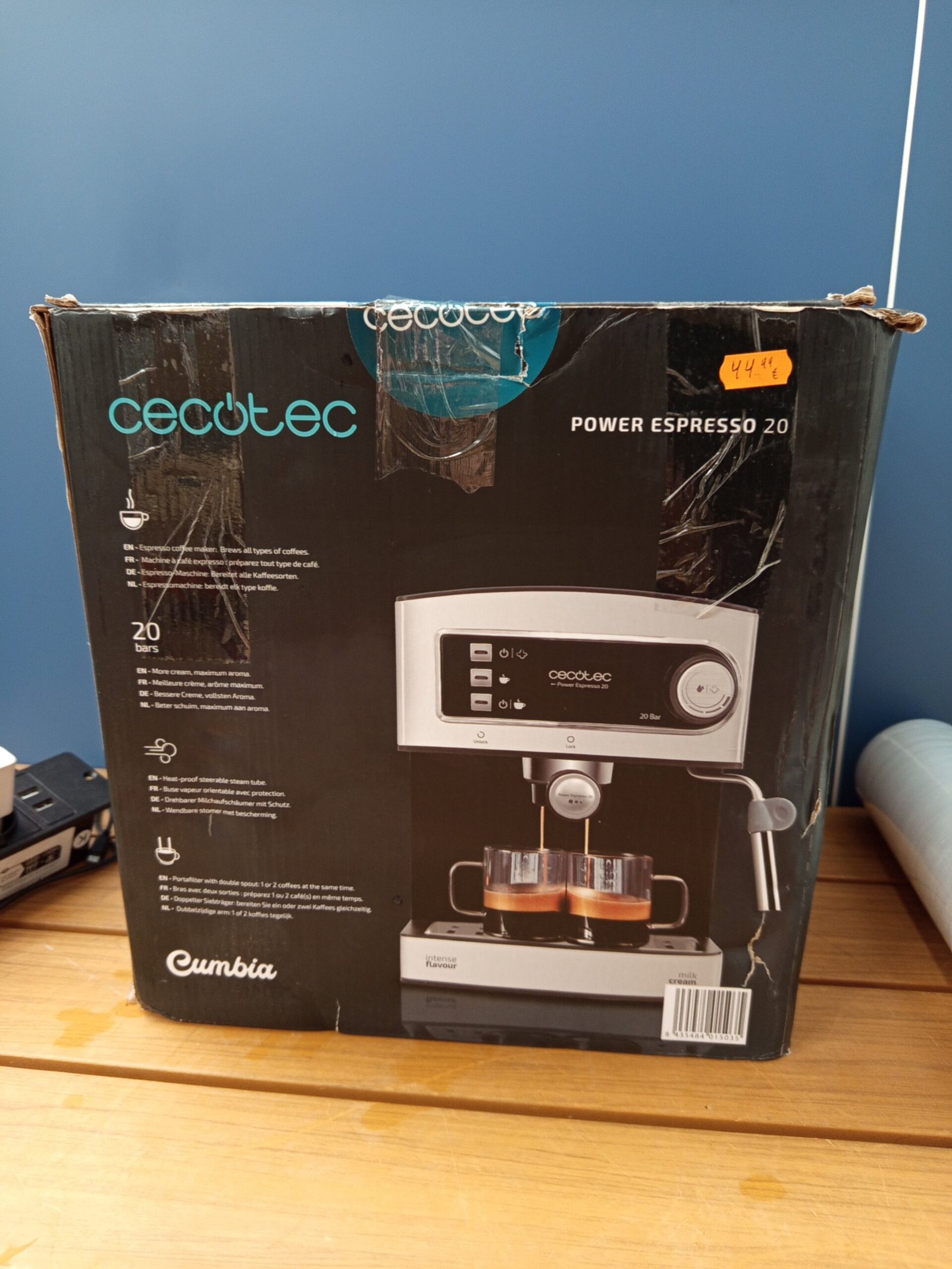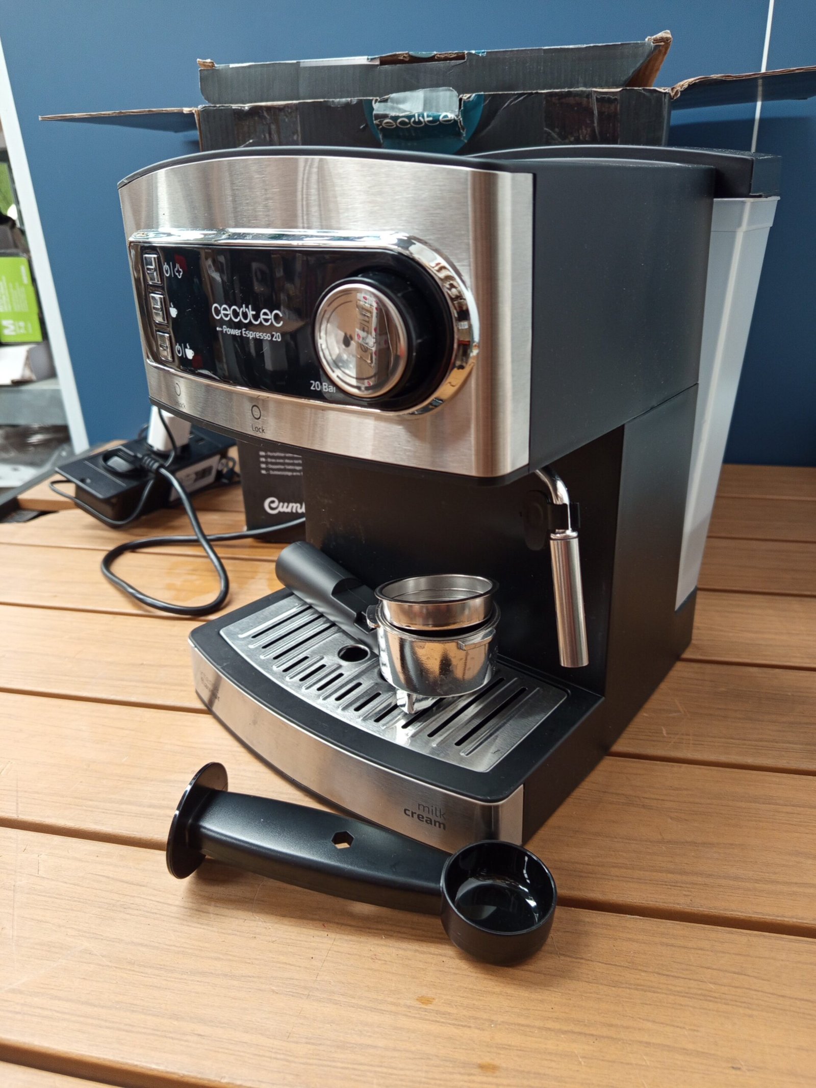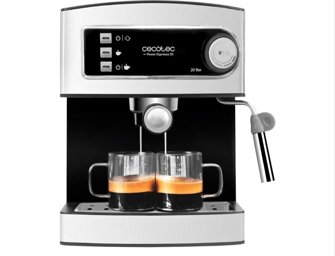 Cecotec Cafetera Express para Espresso y Cappuccino Power Espresso 20. 850W, 20 Bares, 2 Tazas, Vaporizador, 1.5L, Brazo Doble, Calienta tazas, Bandeja Goteo, Indicadores Luminosos, Seguridad Cafetera express para café espresso y cappuccino, prepara todo tipo de cafés con solo pulsar un botón, bomba de presión de 20 bares y 850 W de potencia.
