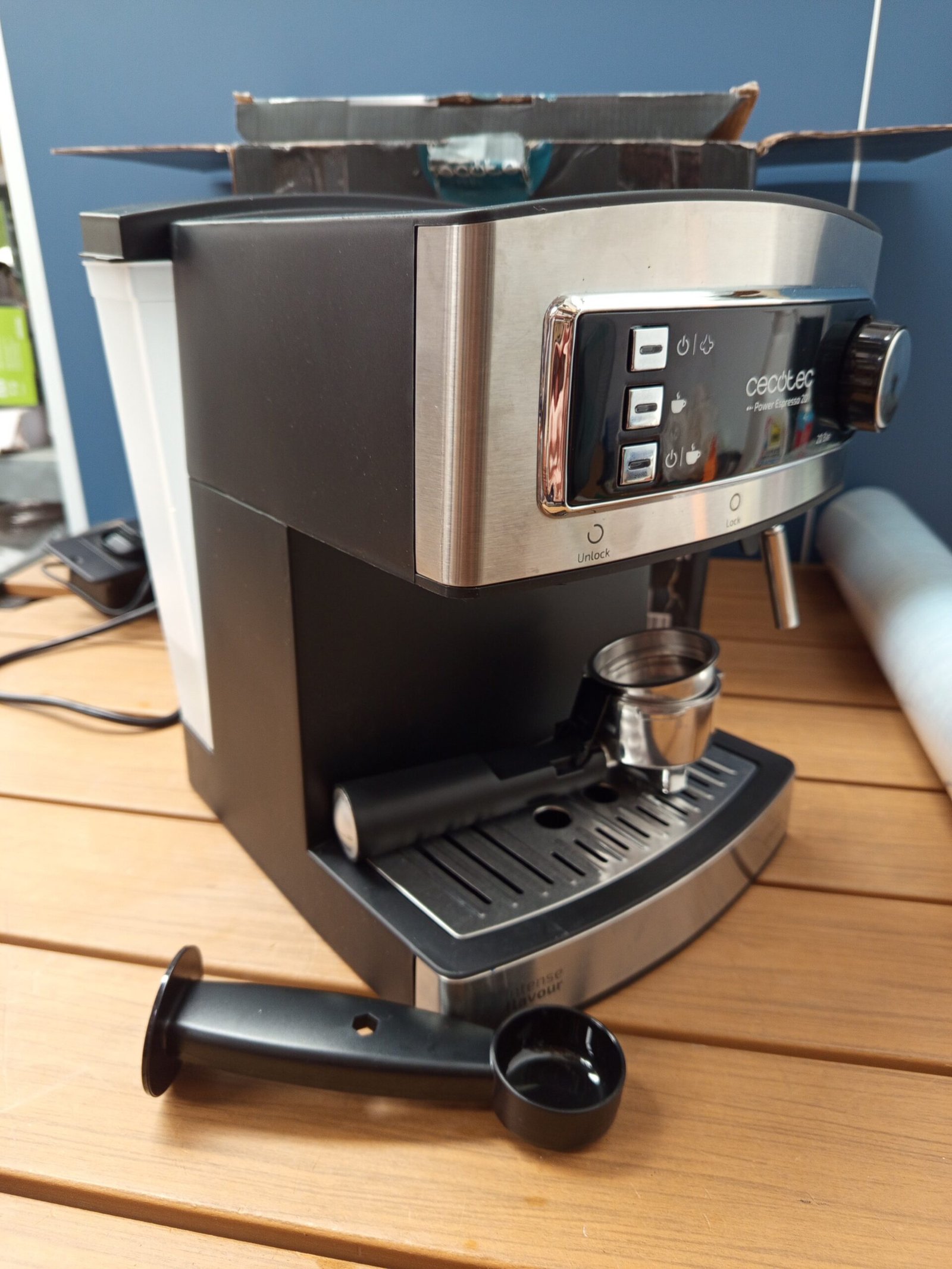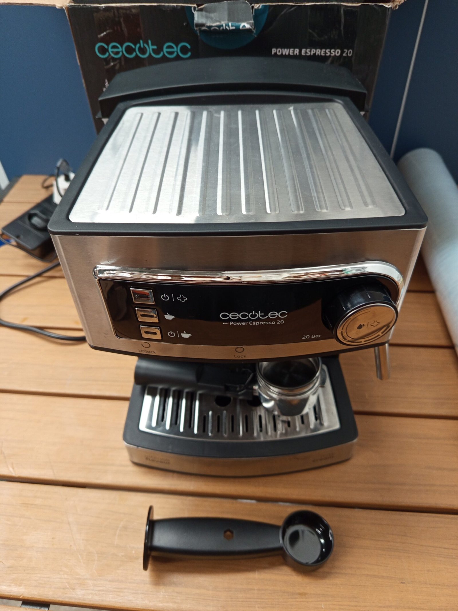 Brazo con doble salida y 2 porta filtros para preparar 1 o 2 cafés a la vez, apta para uso con café molido, depósito de agua extraíble con capacidad de 1,5 litros.