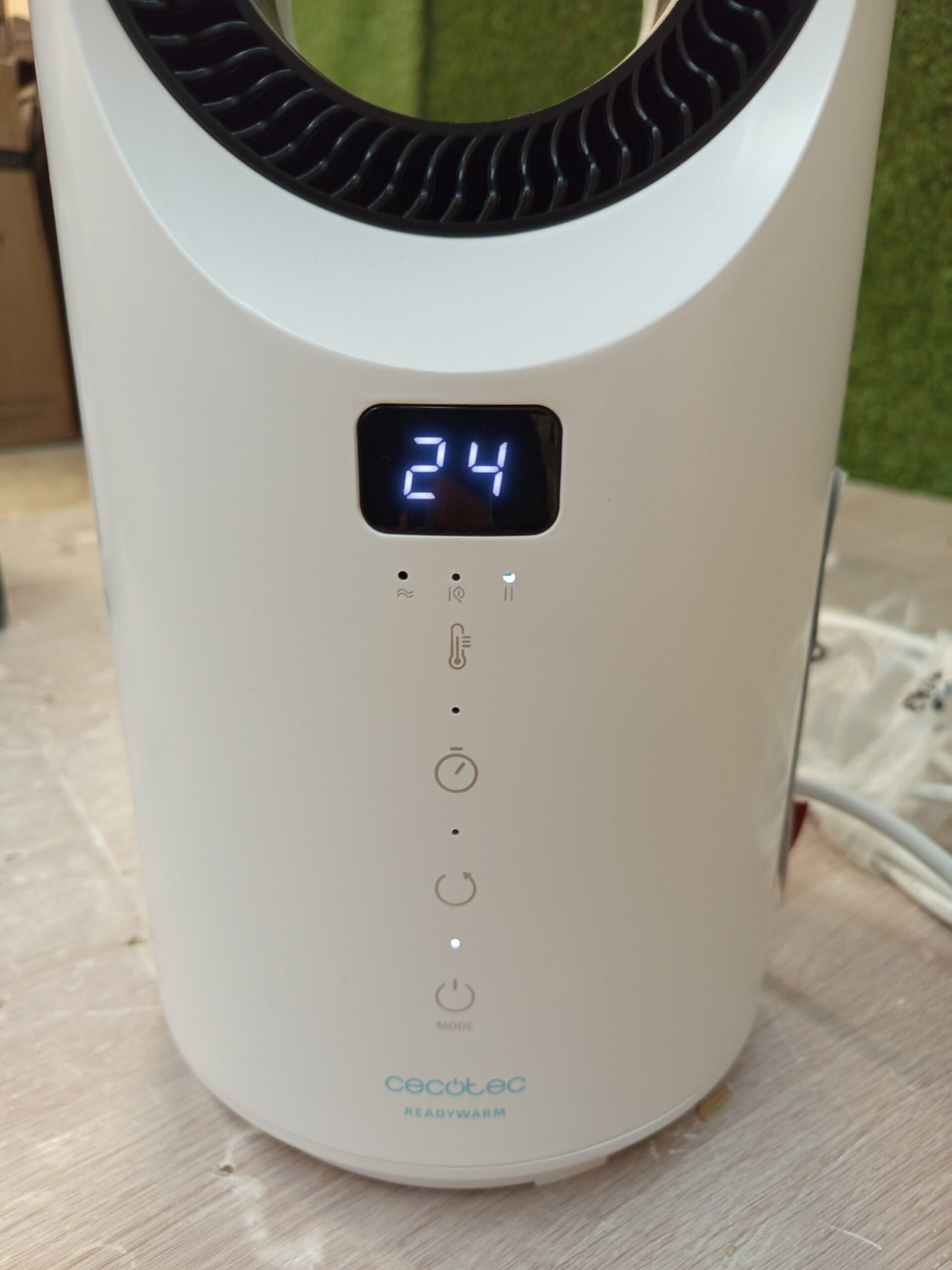El calefactor cuenta con una gran potencia de 1500 W con los que calentar rápidamente la estancia en la cual sea ubicado. Cuenta con 3 modos de funcionamiento: modo Ventilador, modo Low (reduce el consumo a 750 W) y modo High (consumo máximo de 1500 W).