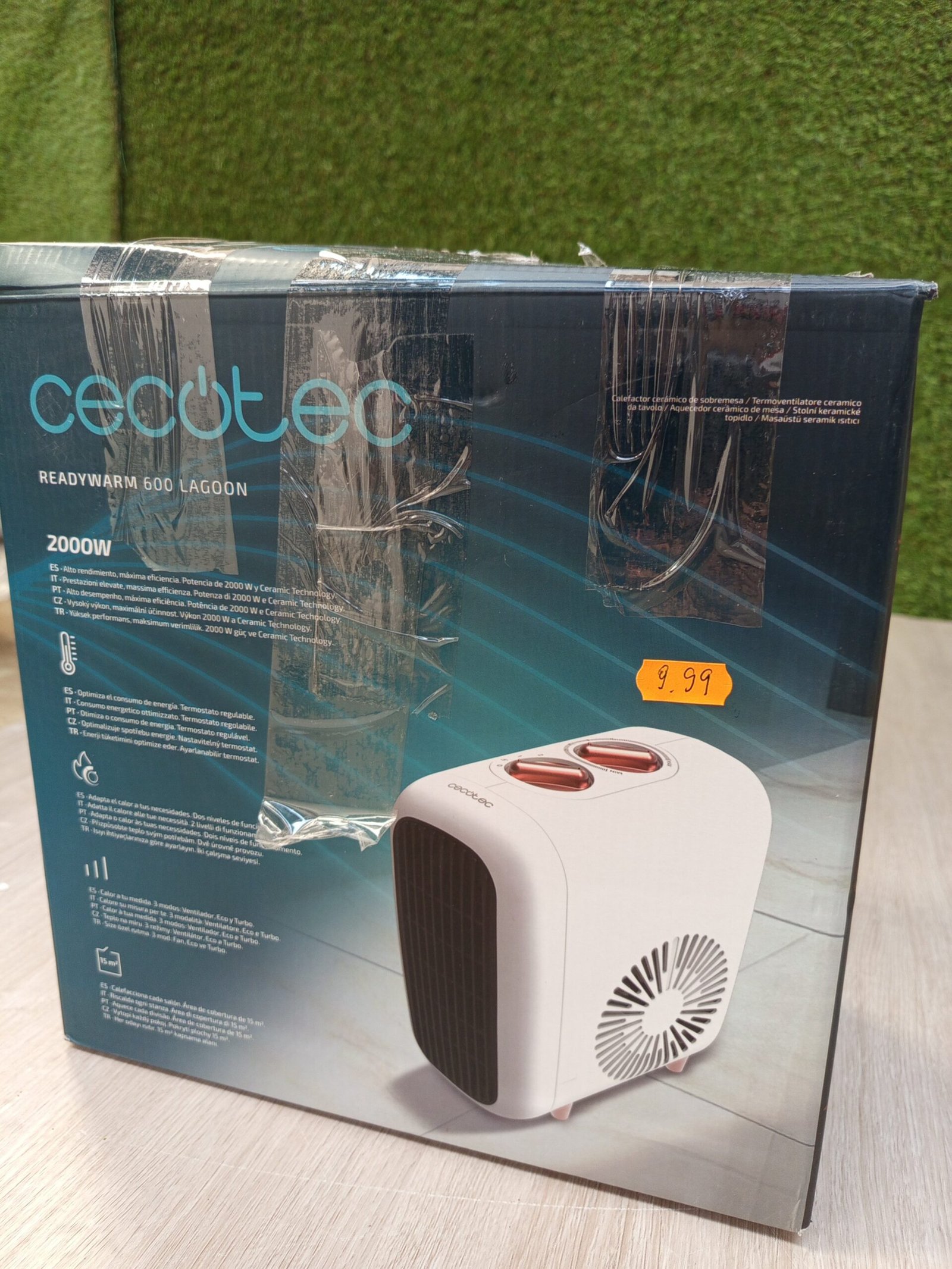Cecotec Calefactor Cerámico de Sobremesa ReadyWarm 600 Lagoon. 2000W, 3 Modos, 2 Niveles Calor, Termostato, Silencioso 30dB, Seguridad Triple, VerticalDesign, Cobertura 15m², Diseño Compacto