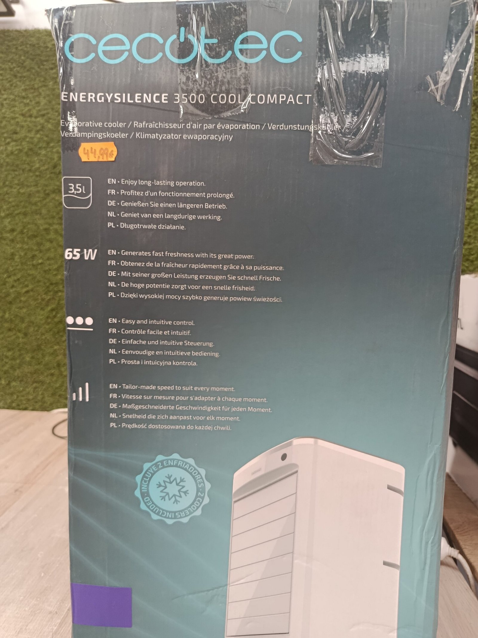 Cecotec Climatizador Evaporativo EnergySilence 3500 Cool Compact. 65 W, Depósito 3,5 L, 3 Velocidades, Oscilación de 70º, Ruedas multidireccionales, Incluye 2 Enfriadores