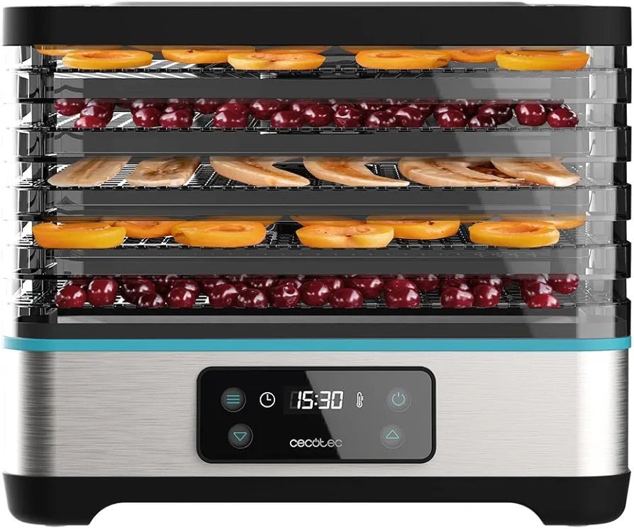 Cecotec Deshidratador de Alimentos VitaDry Pro. 300 W, Deshidratadora de Frutas con 5 Bandejas Altura Regulable, Pantalla Digital, Temporizador 30 min a 48 hs, Temperatura 35º-70º, Inox