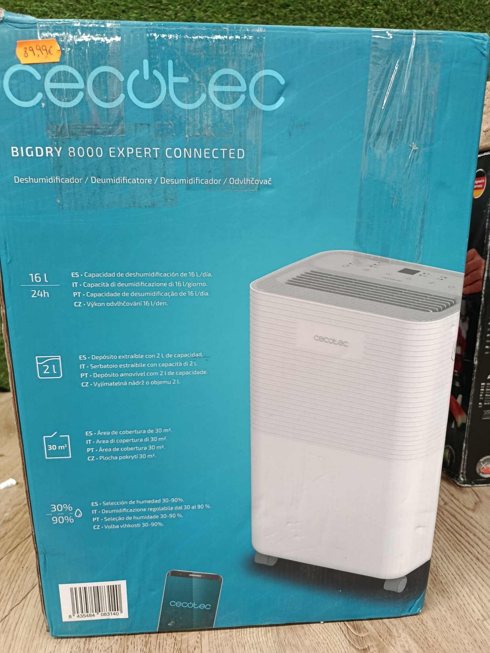 Cecotec Deshumidificador BigDry 8000 Expert Connected. 16 L/día, Depósito Extraíble de 2L, Control por Wifi, Función de Secado de Ropa y Temporizador 24 horas, Área de Cobertura de 30m2