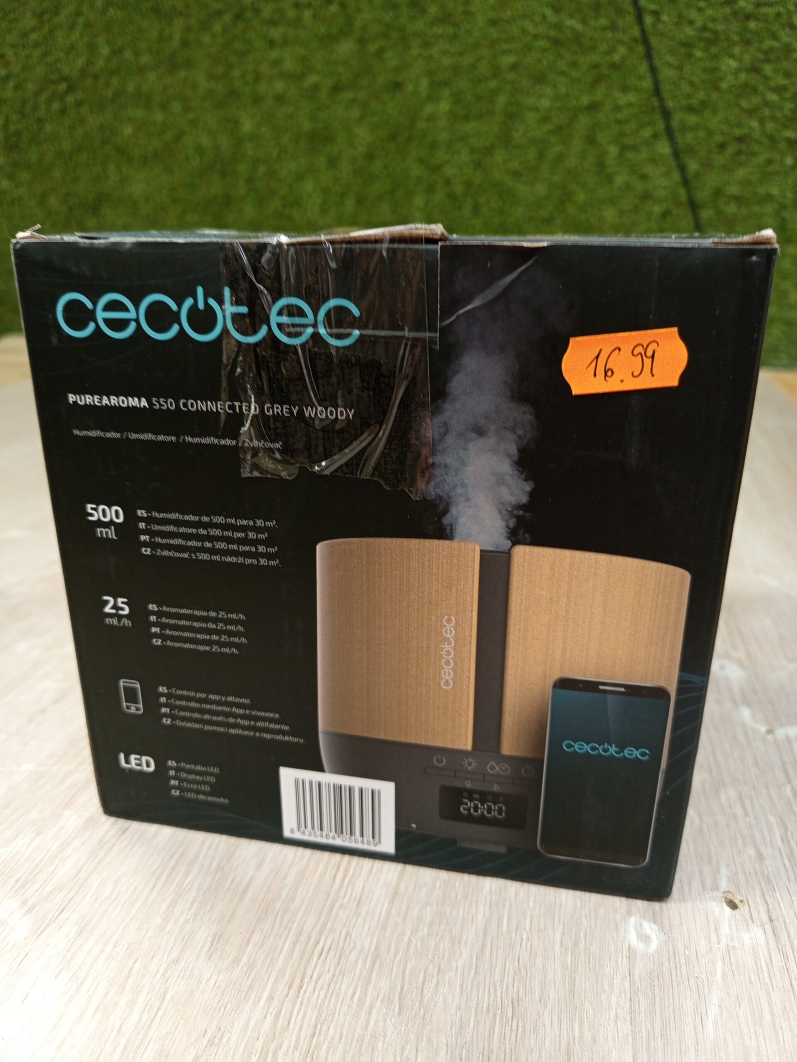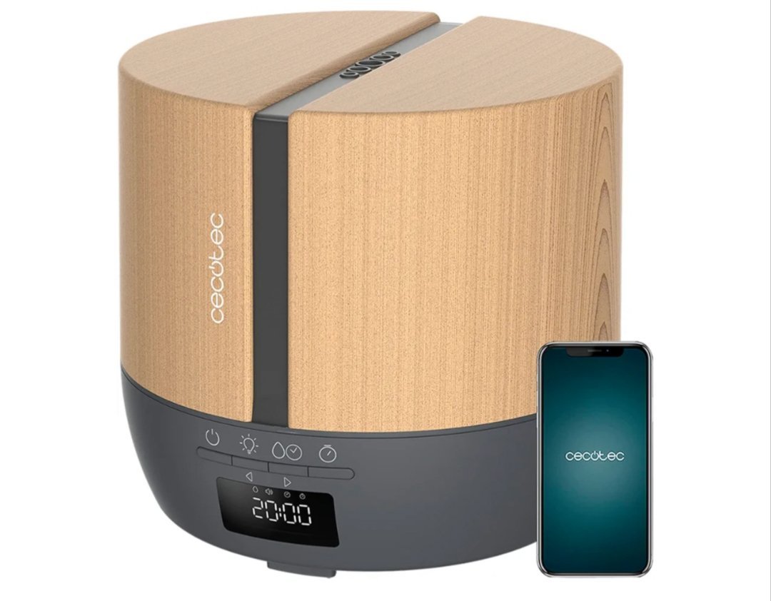 Cecotec Difusor de aromas PureAroma 550 Connected Grey Woody. Capacidad 500ml, Pantalla LED, Altavoz, Control por bluetooth, App, Temporizador 12h, 3 Modos de funcionamiento, Cobertura 30m2