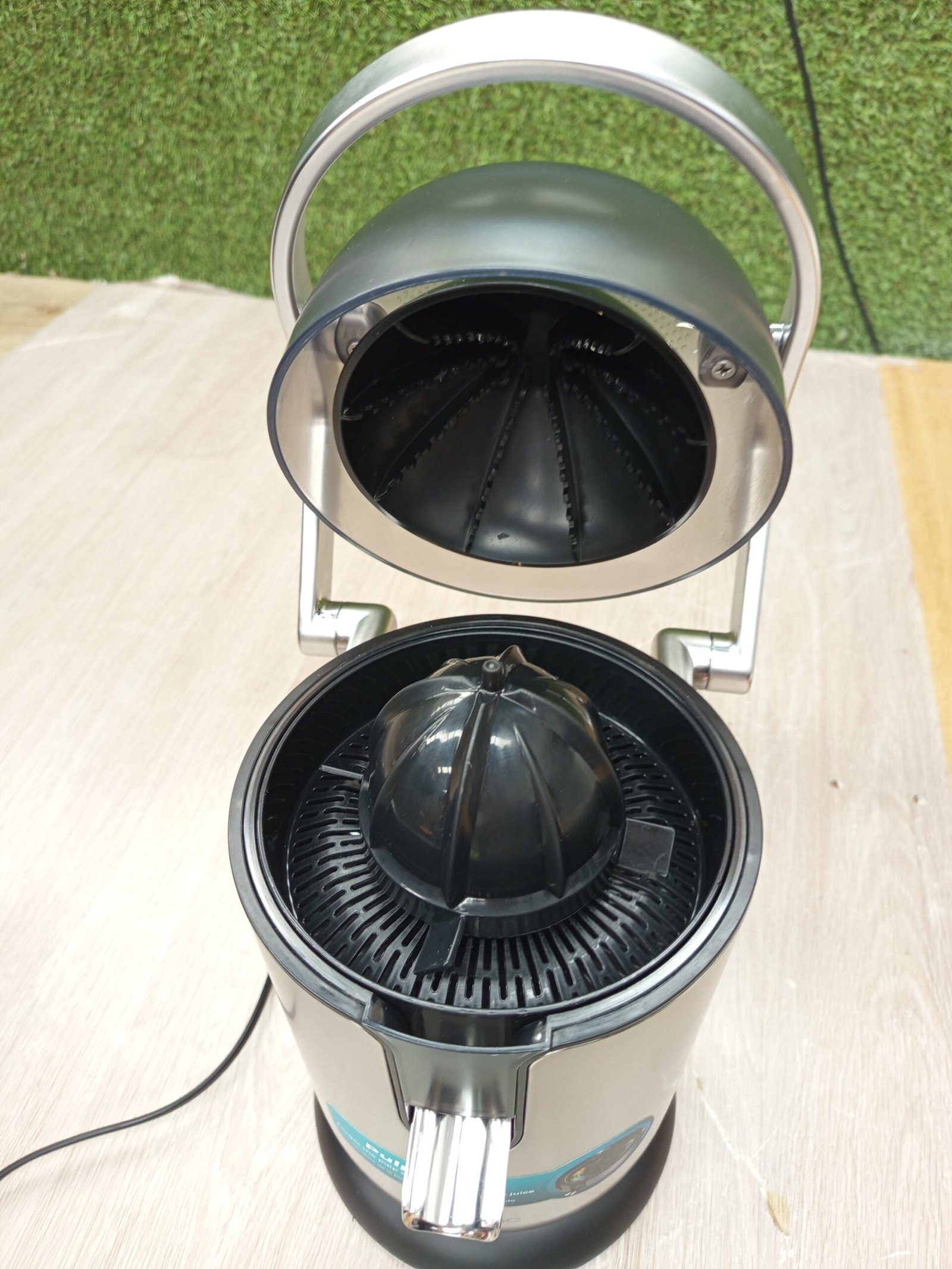 Exprimidor eléctrico de brazo para cítricos con 600 W de potencia. Exprime de forma rápida y sencilla aprovechando al máximo la fruta.