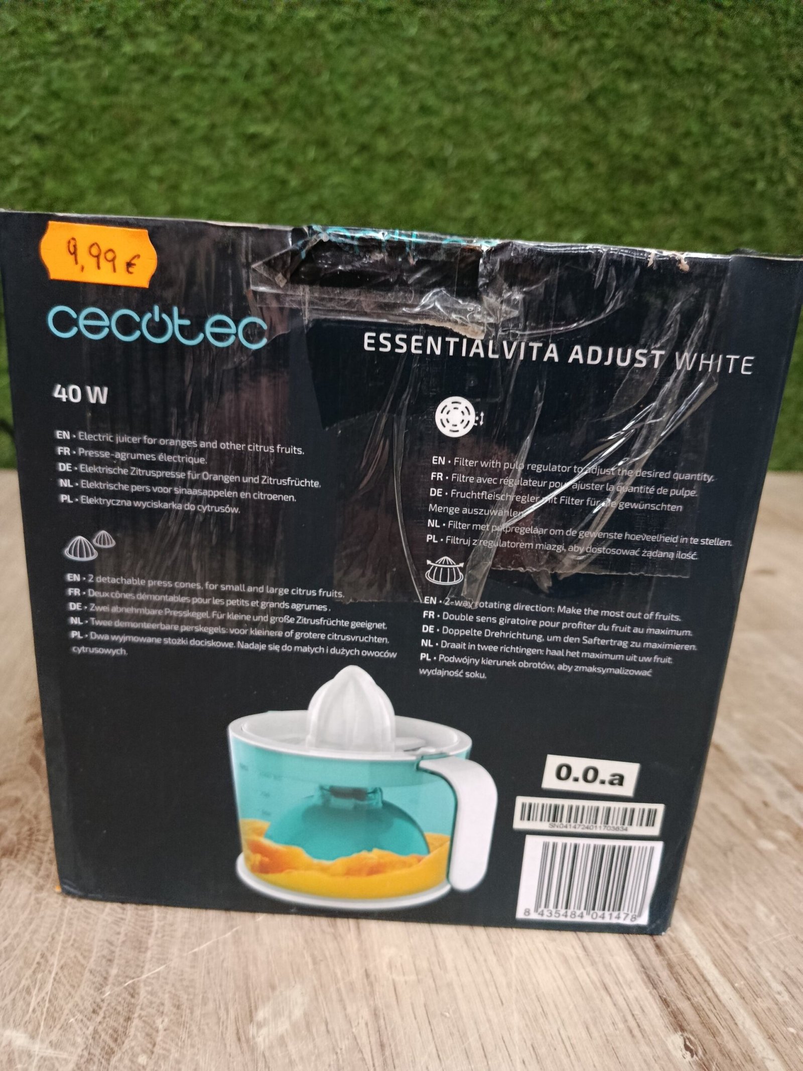 Cecotec Exprimidor eléctrico EssentialVita Adjust White. Potencia 40W, Filtro regulador de pulpa ajustable, 2 Conos desmontables, Boquilla antigoteo, Apto lavavajillas