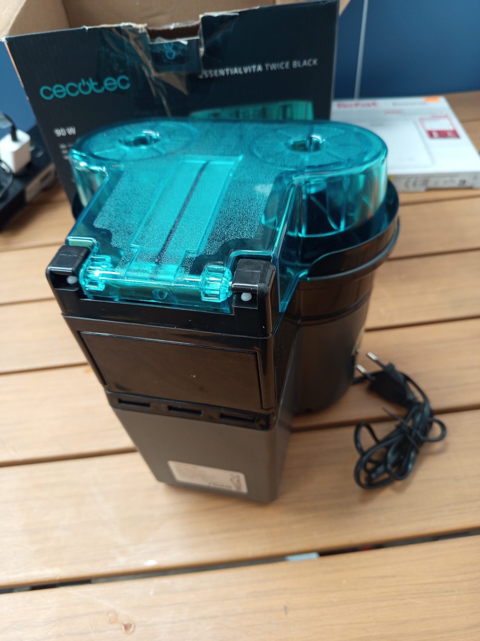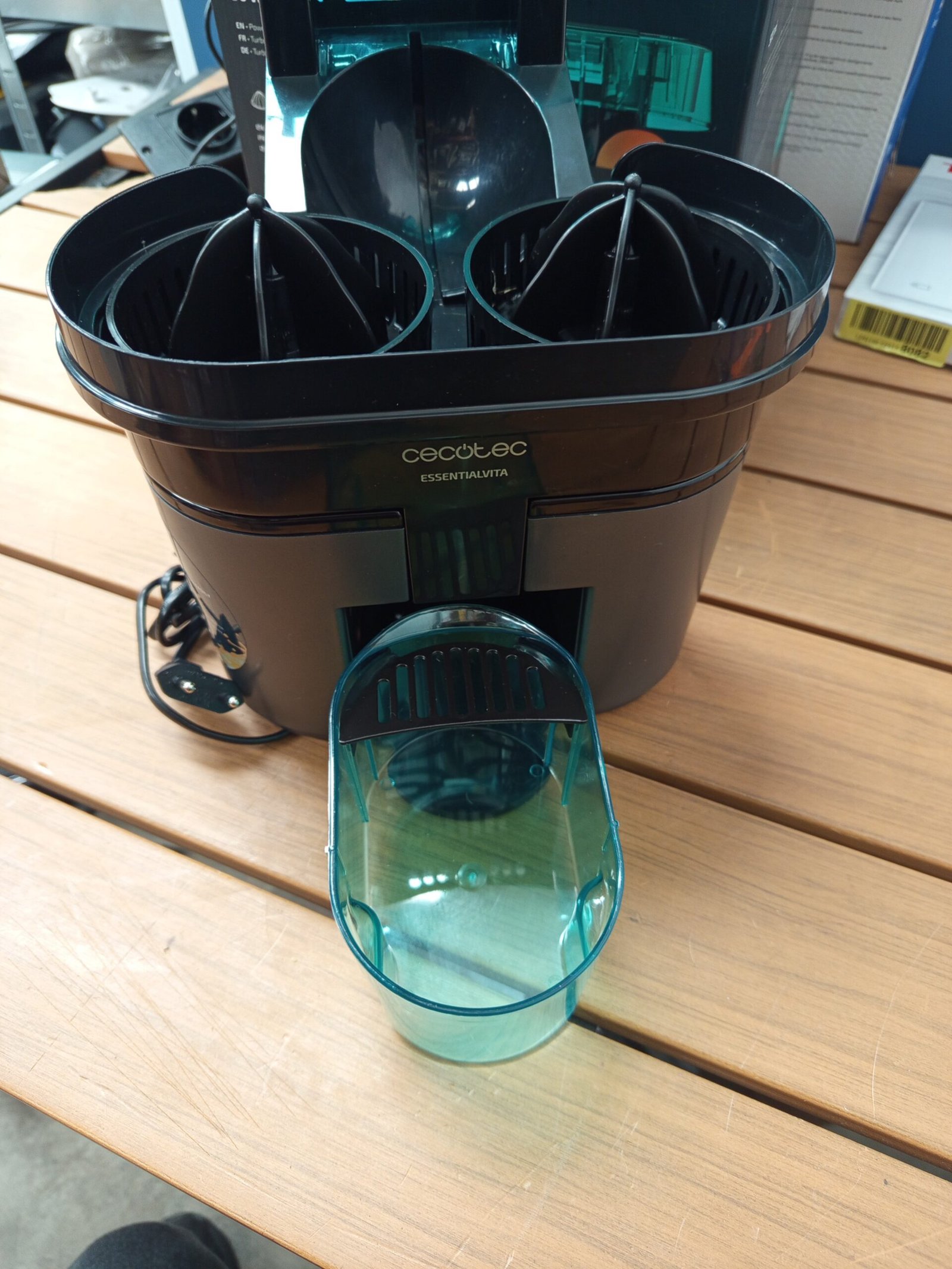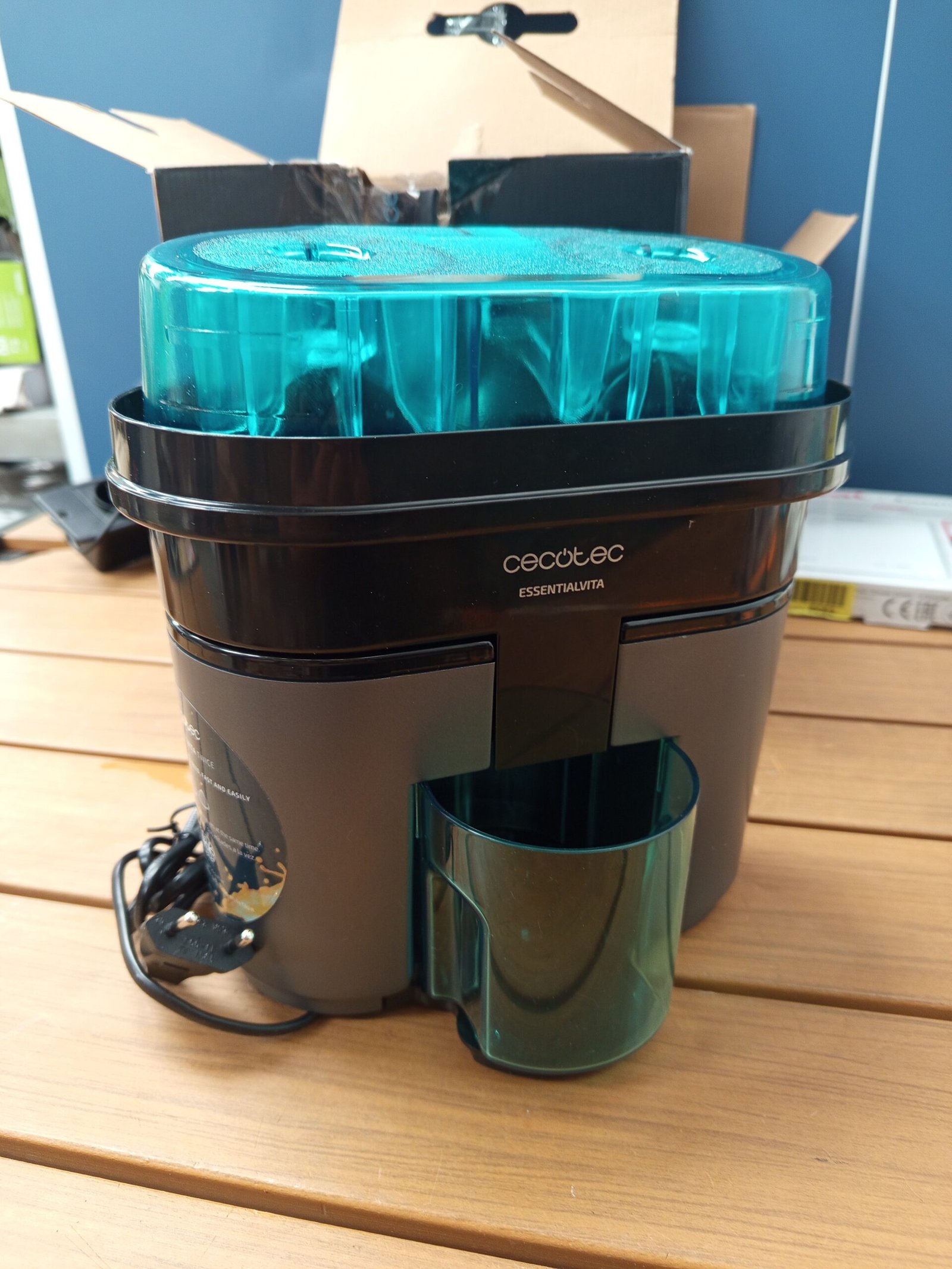 - Cecotec Exprimidor Naranjas eléctrico EssentialVita Twice Black. 90 W, Doble Cabezal y Cortador, Filtro para Pulpa, Vaso 500ml, Piezas aptas para lavavajillas Turboexprimidor de naranjas con 90 W de potencia. Doble cabezal para exprimir dos mitades de naranja a la vez.Incluye un cortador de cítricos en la tapa para cortar la pieza de fruta en el mismo exprimidor. Corte y exprimido de dos mitades de naranja con un solo aplique de presión.