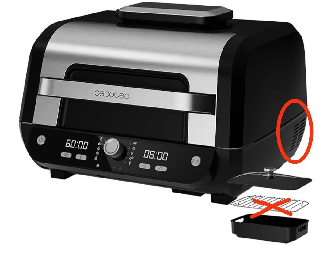 Cecotec Freidora de Aire sin Aceite de 8 L Cecofry FireDome 8000 Pro. 1700 W, Doble Resistencia, 4 Niveles de Grill, 12 Modos Predefinidos, Temperatura y Tiempo Ajustables, Pack de Accesorios