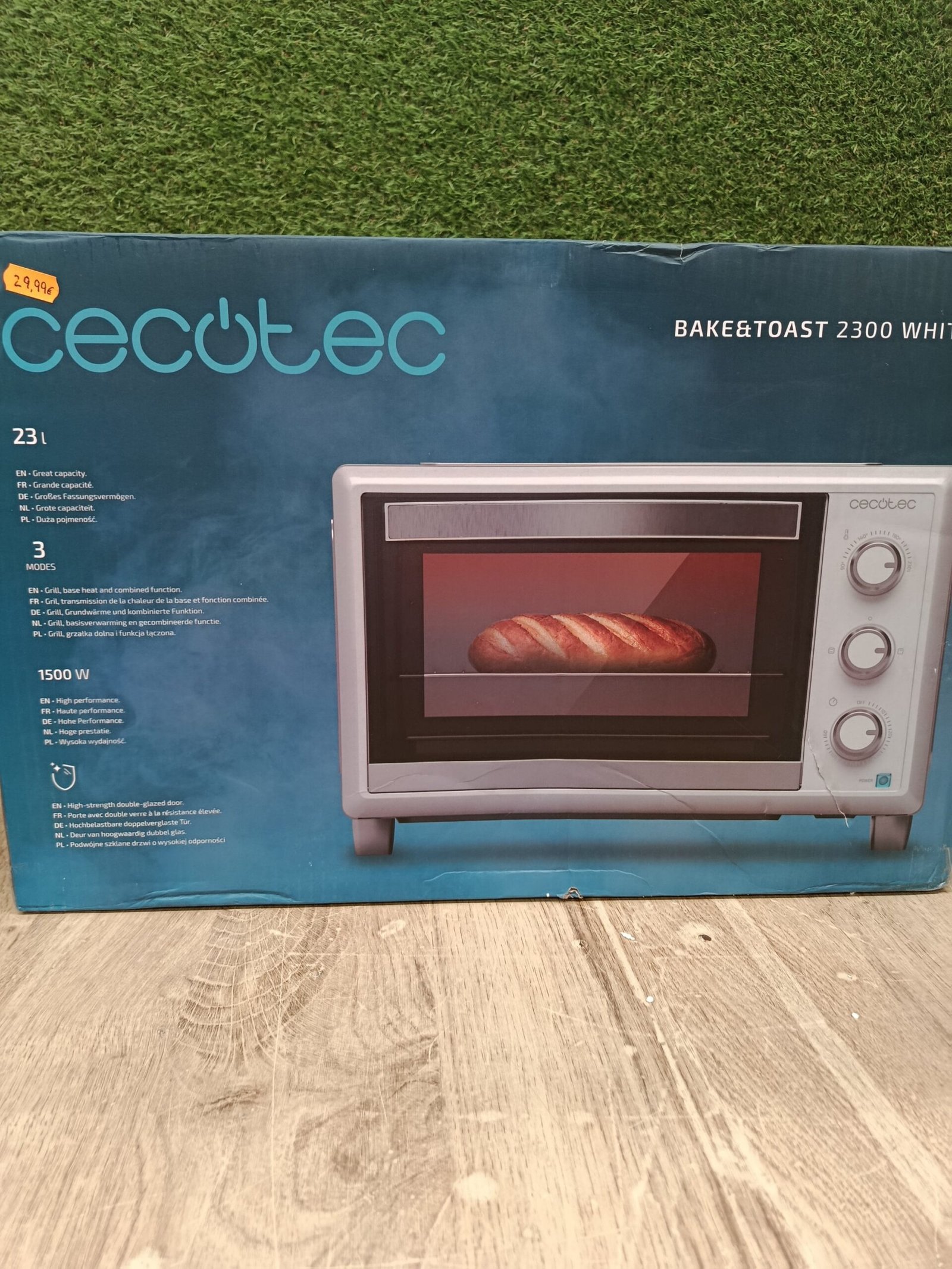 Cecotec Horno de sobremesa Bake&Toast 2300 White, 23 L, 1500 W, 3 modos de calor, Temporizador 60min, Temperatura regulable hasta 230ºC, Bandeja recogemigas.