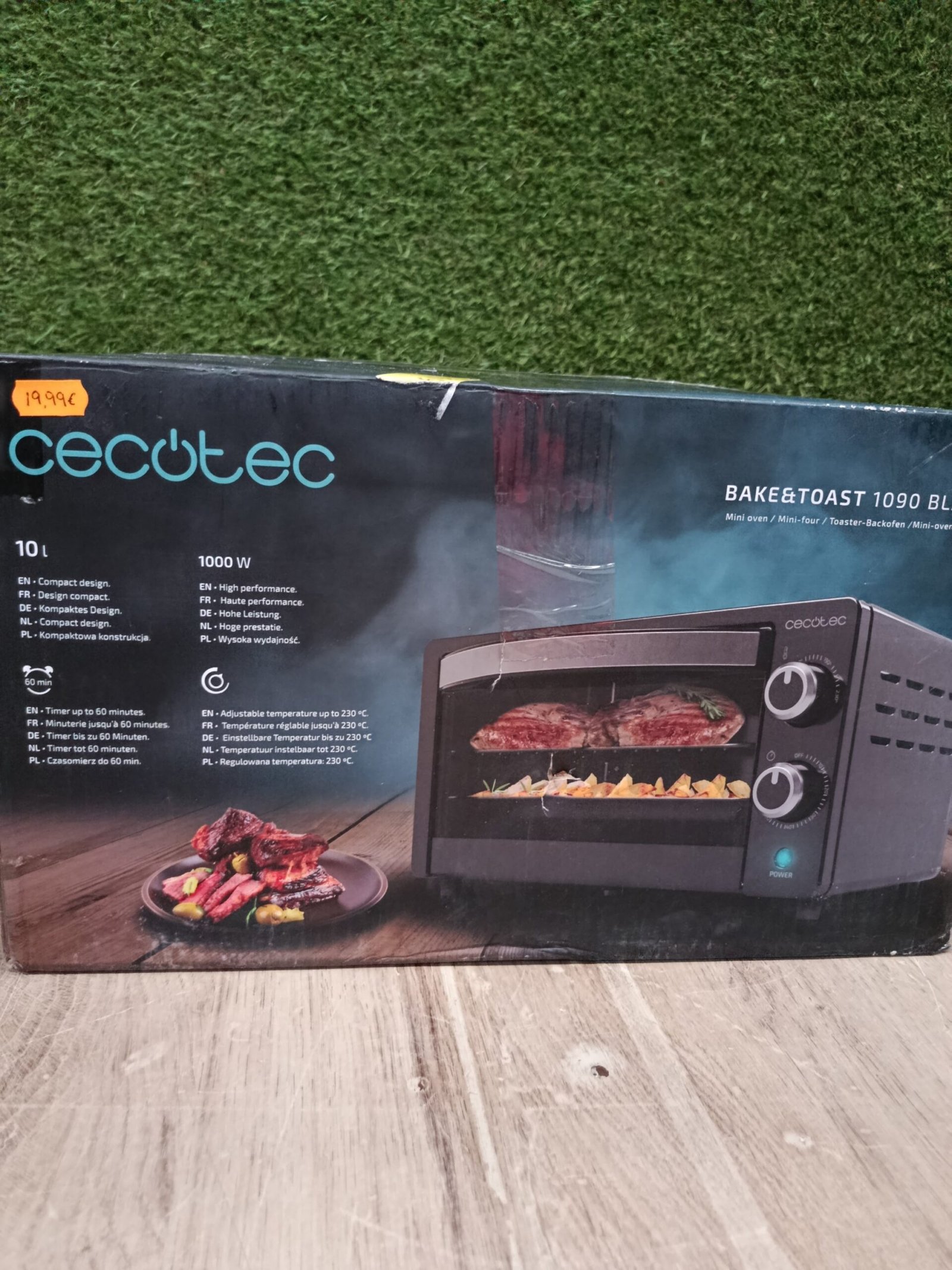 Cecotec Horno de sobremesa Bake&Toast 1090 Black, 10 L, 1000 W, Temporizador 60min, Temperatura regulable hasta 230ºC, bandeja para hornear, parrilla y una asa con pinzas