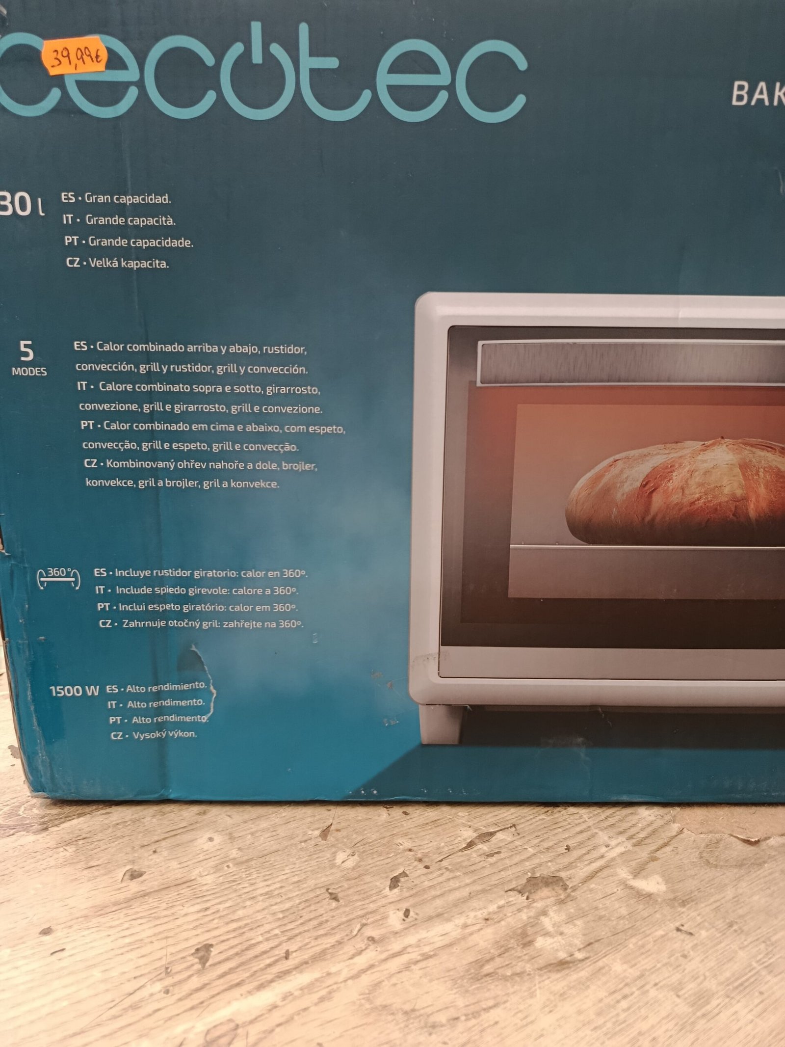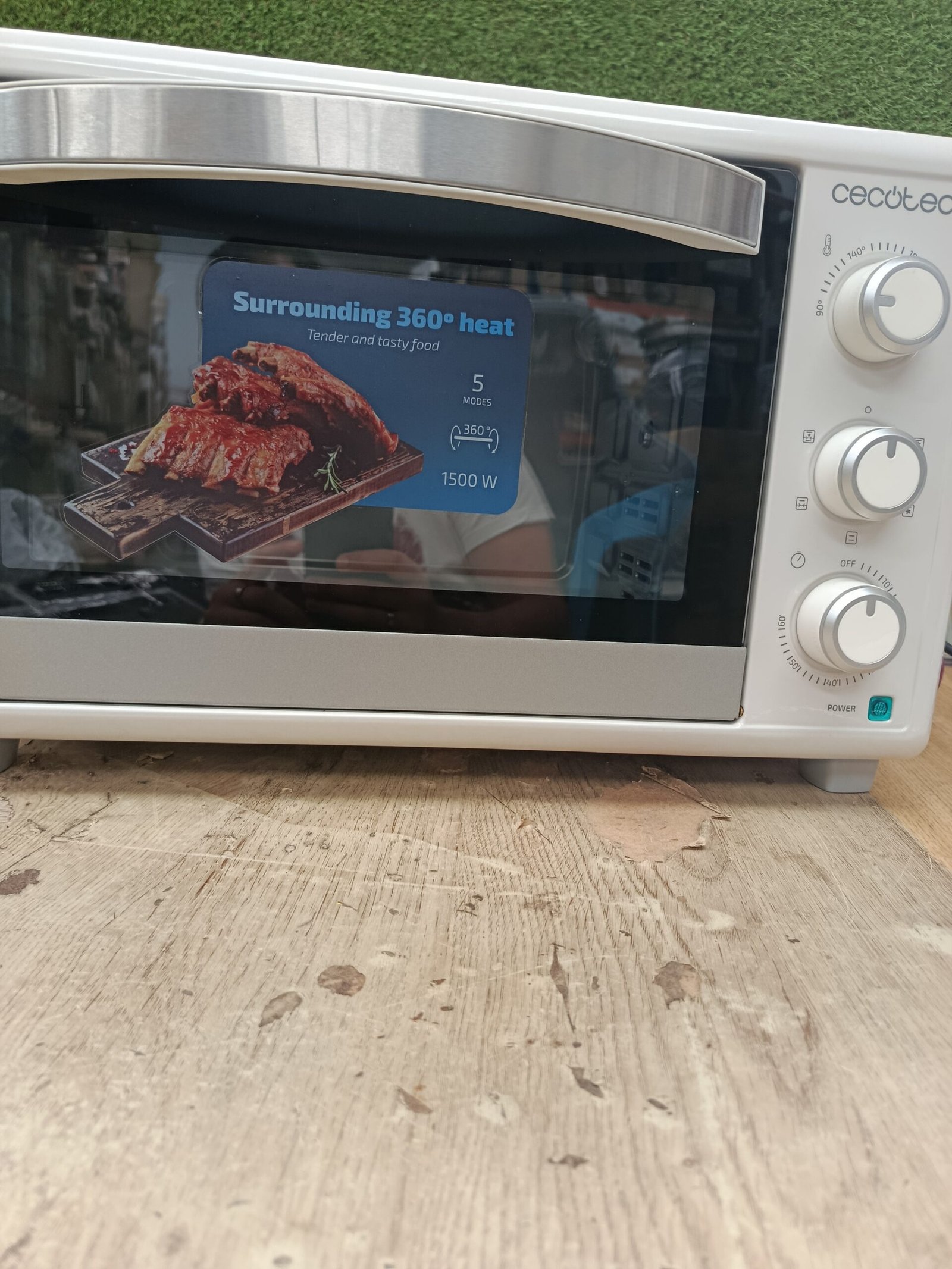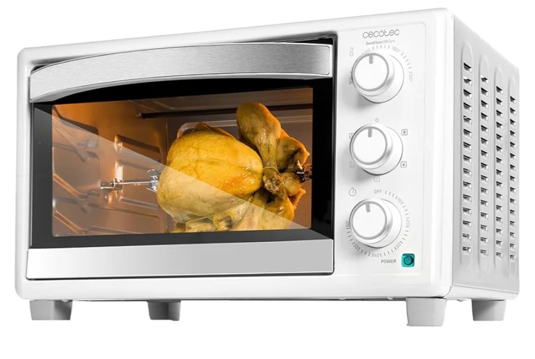 Cecotec Horno de sobremesa Bake&Toast 3090 White Gyro, 30 L, 1500 W, 5 funciones diferentes, Incluye rustidor gitadorio, Luz interior, bandeja recogemigas.