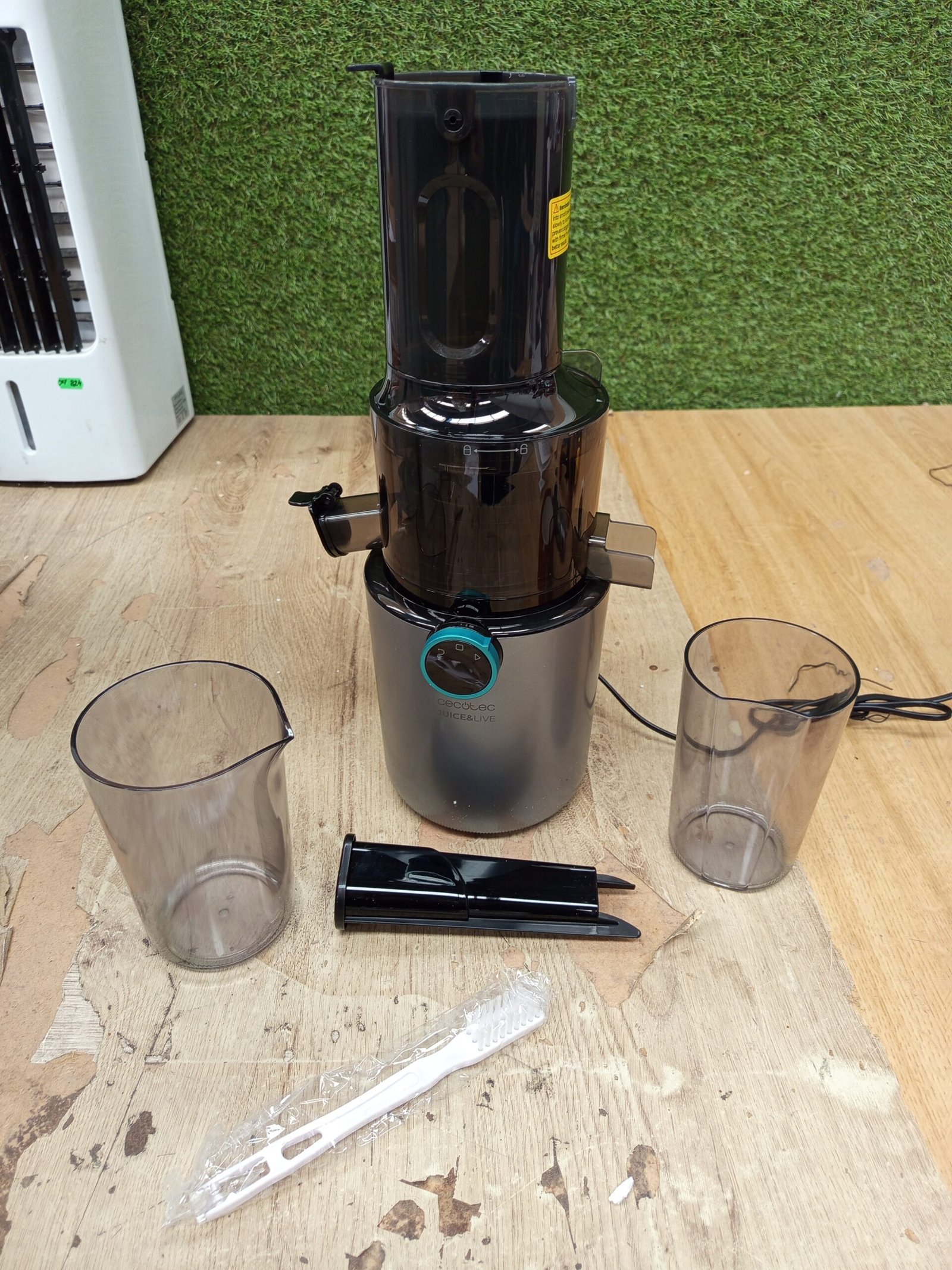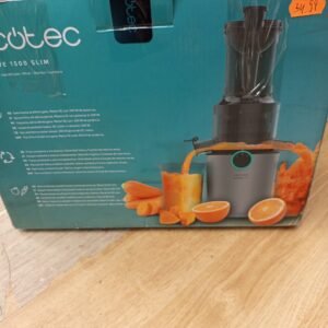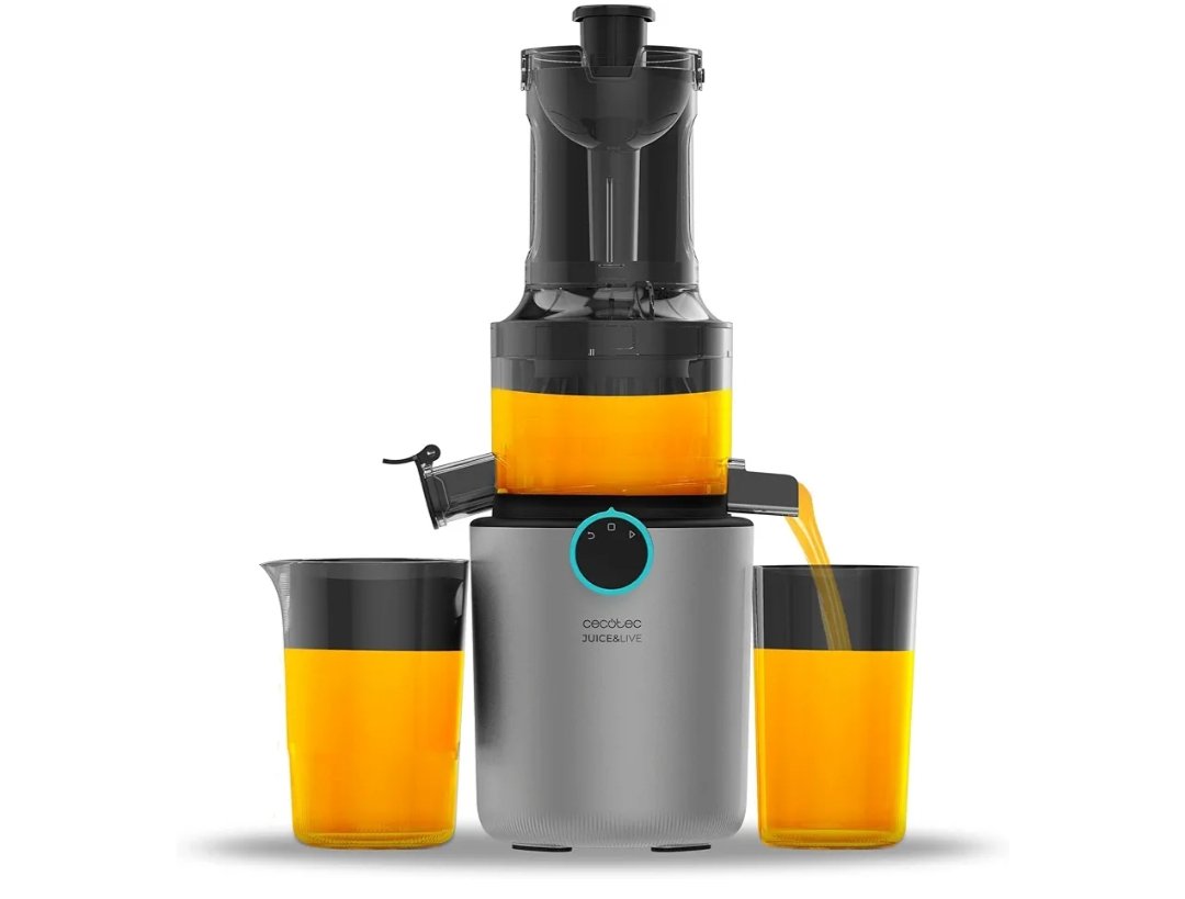 Cecotec Licuadora para Frutas y Verduras de Prensa Fría Juice&Live 1500 Slim. Motor DC de 200W, 1 Velocidad y Función de Marcha Atrás, Boca de 82mm, 55±5 RPM, Fácil Montaje y Limpieza