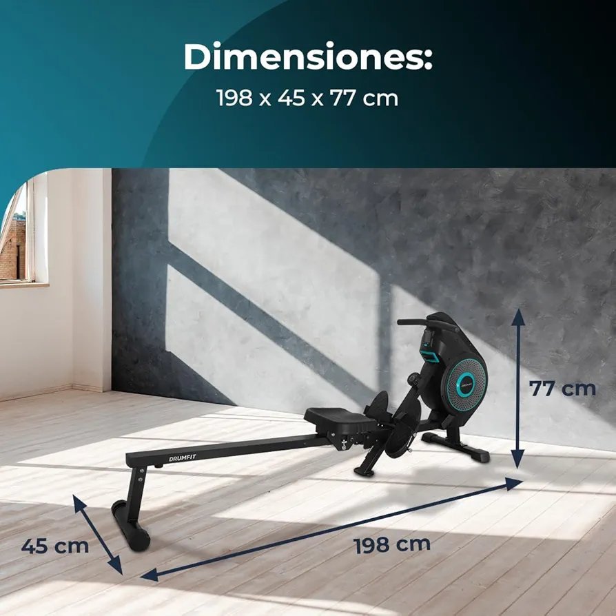 Cecotec Máquina de remo DrumFit Rower, Resistencia Magnética, 10 Niveles, Volante de Inercia, Deslizamiento Silencioso, Display LCD, Diseño compacto y Ruedas
