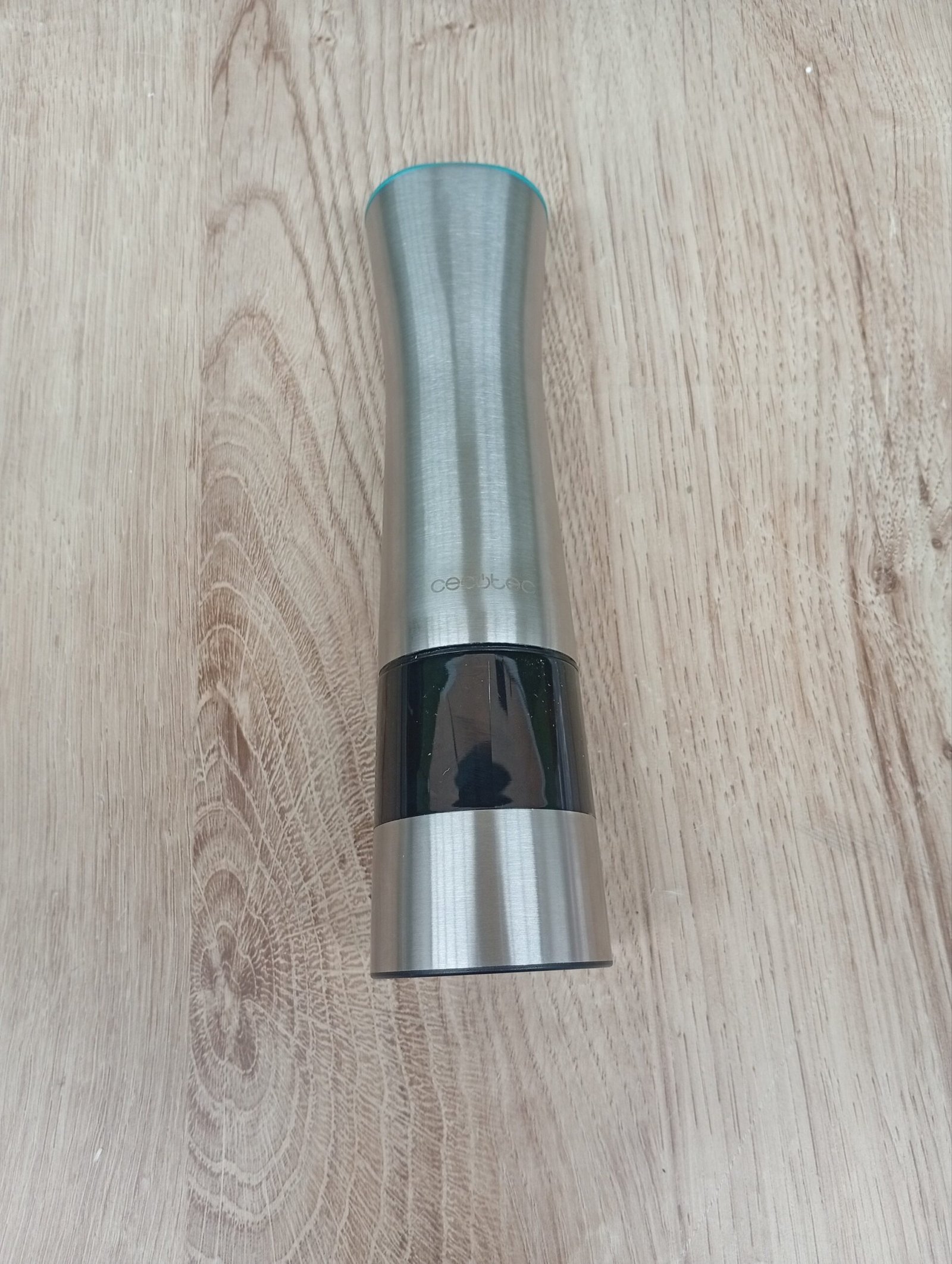 Cecotec Molinillo de Especias Eléctrico InstantMill Press. Cuerpo de Acero Inox, Amoladora Cerámica con Función Press, Molienda ajustable, Ventanas de acrílico, Luz LED Incorporada