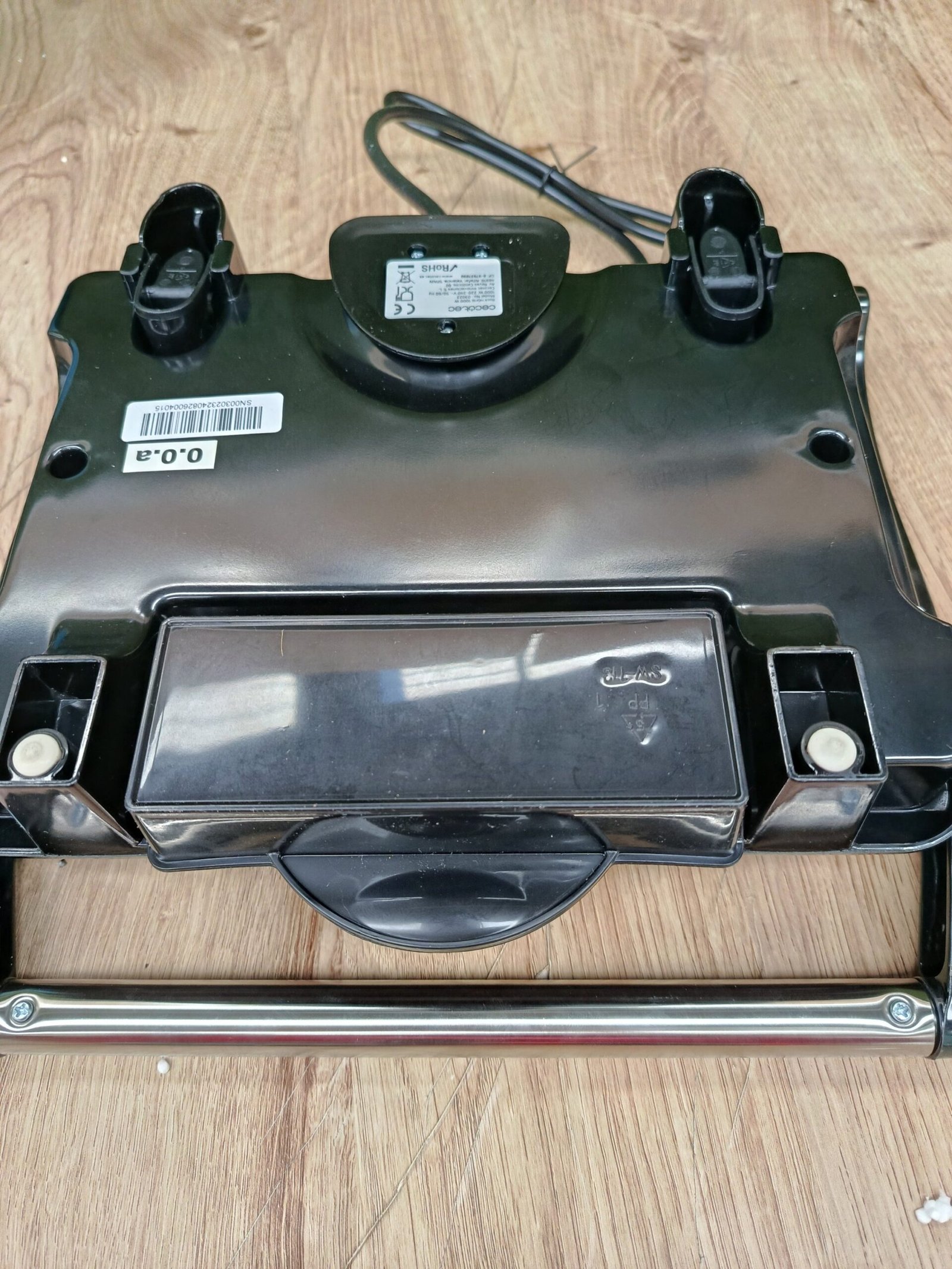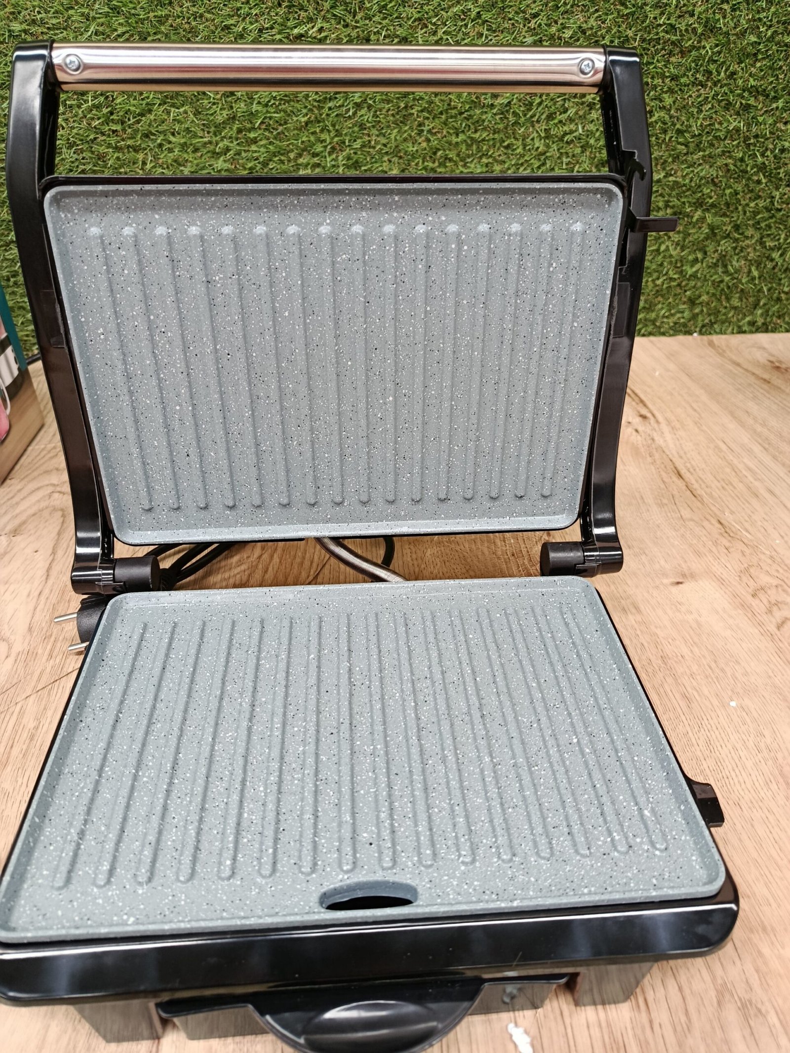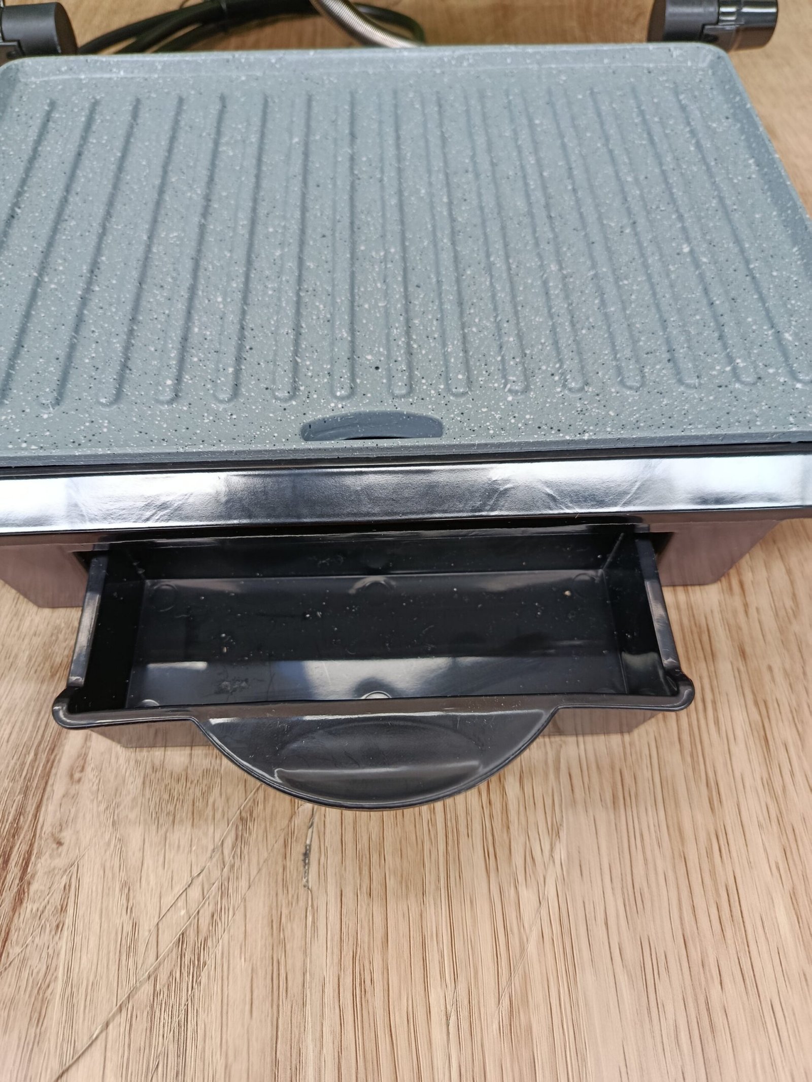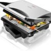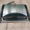 Parrilla eléctrica Contact Grill con 1000 W de potencia y con cajetín recogegrasas para mejorar el uso y la limpieza.