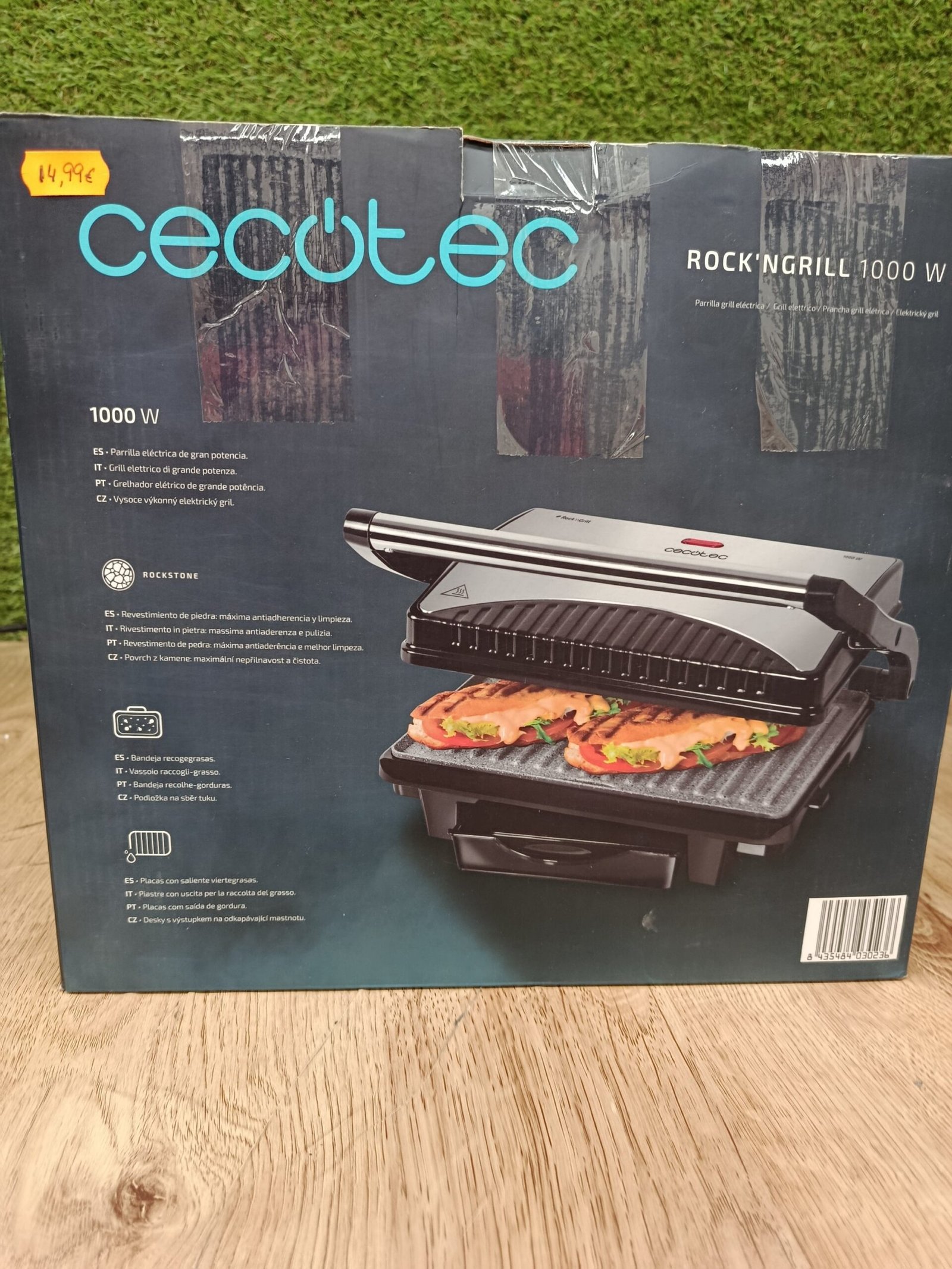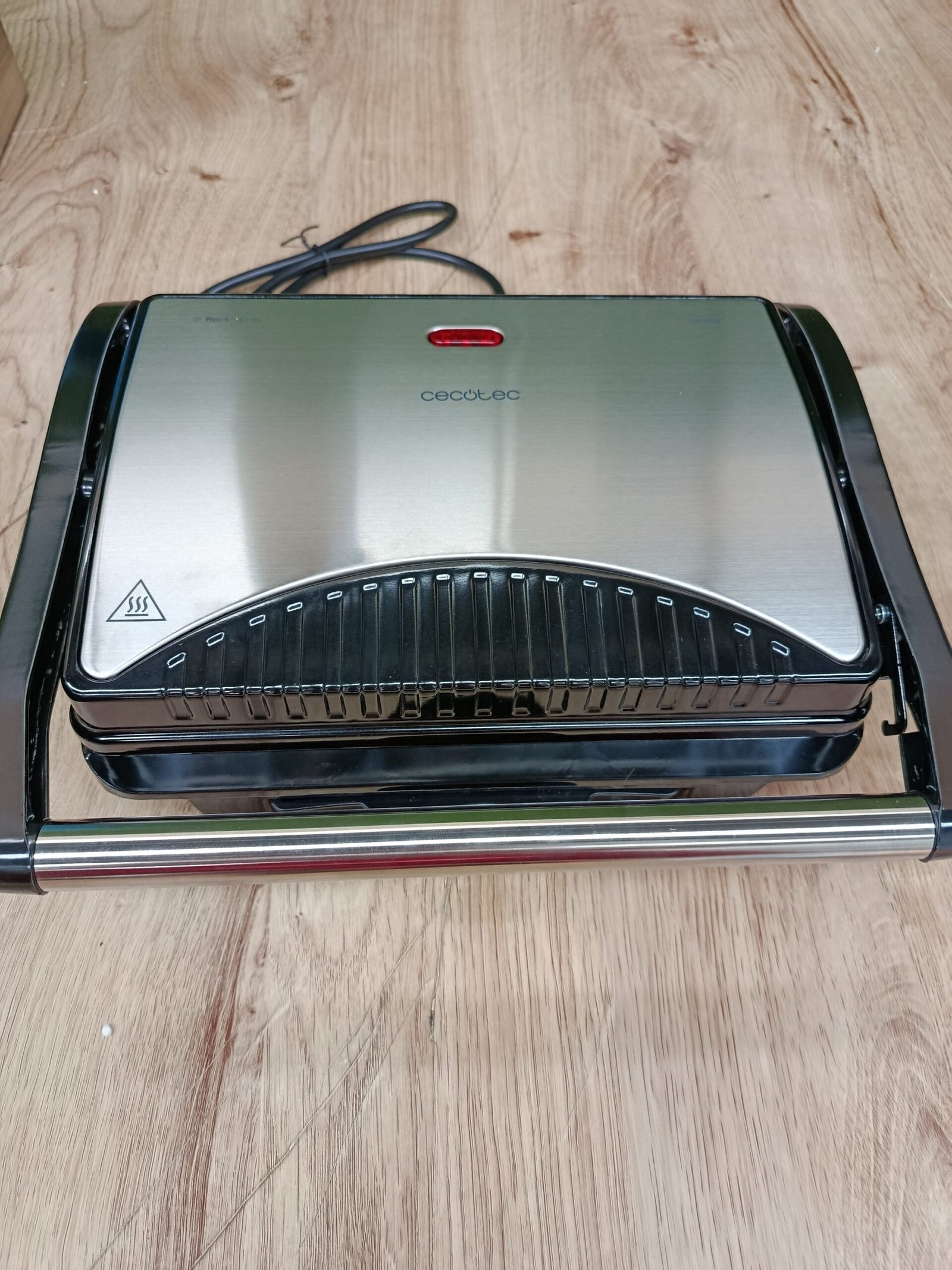 Cecotec Parrilla Eléctrica Rock’nGrill 1000. 1000 W, Revestimiento Antiadherente RockStone, Placa superior flotante, Cajetín recogegrasas, 25.5 x 29.5 x 10 cm, Color Acero/Negro