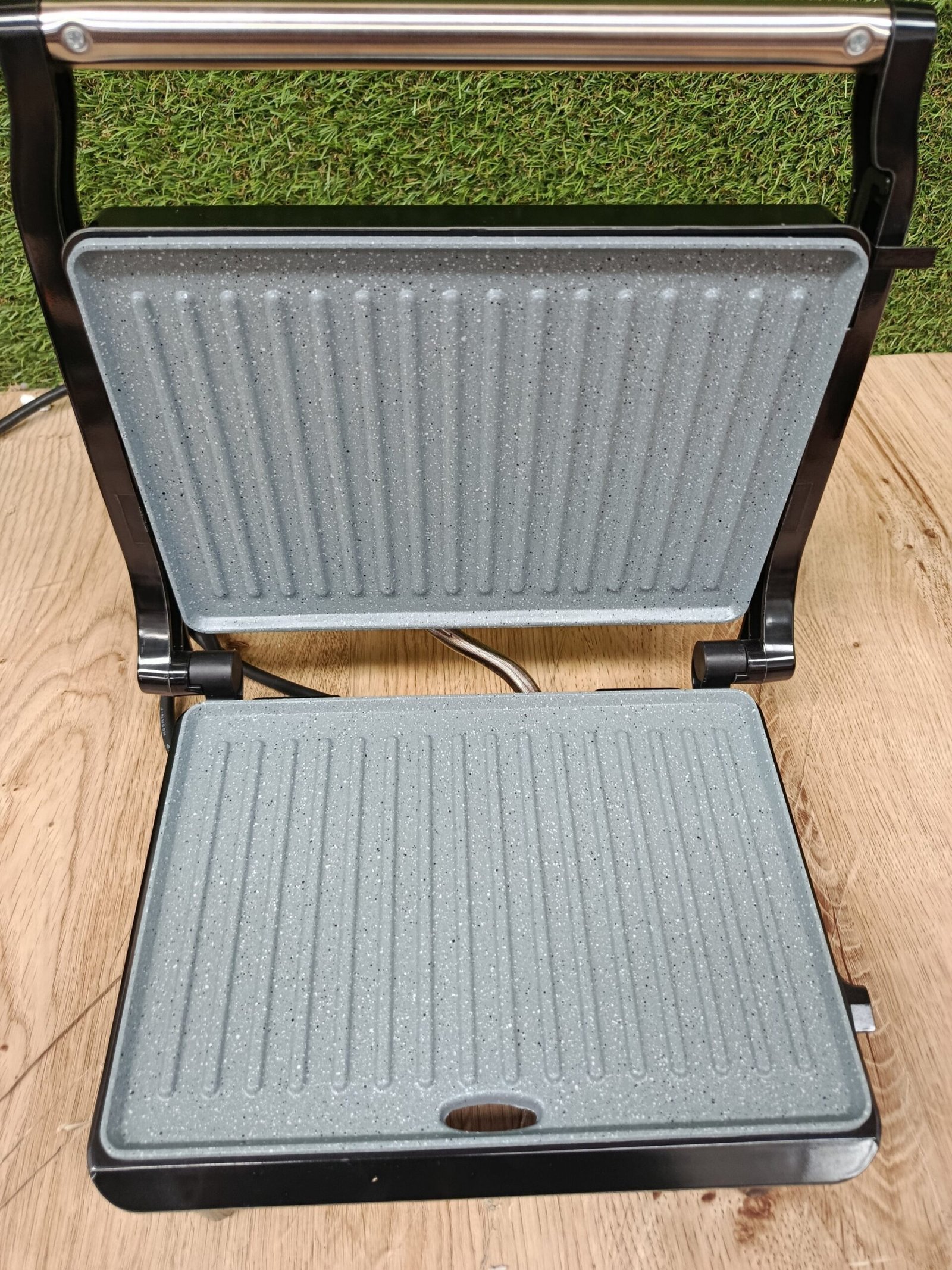 Parrilla eléctrica Contact Grill con 1500W de potencia y revestimiento de piedra RockStone que asegura la máxima antiadherencia y la mejor limpieza.