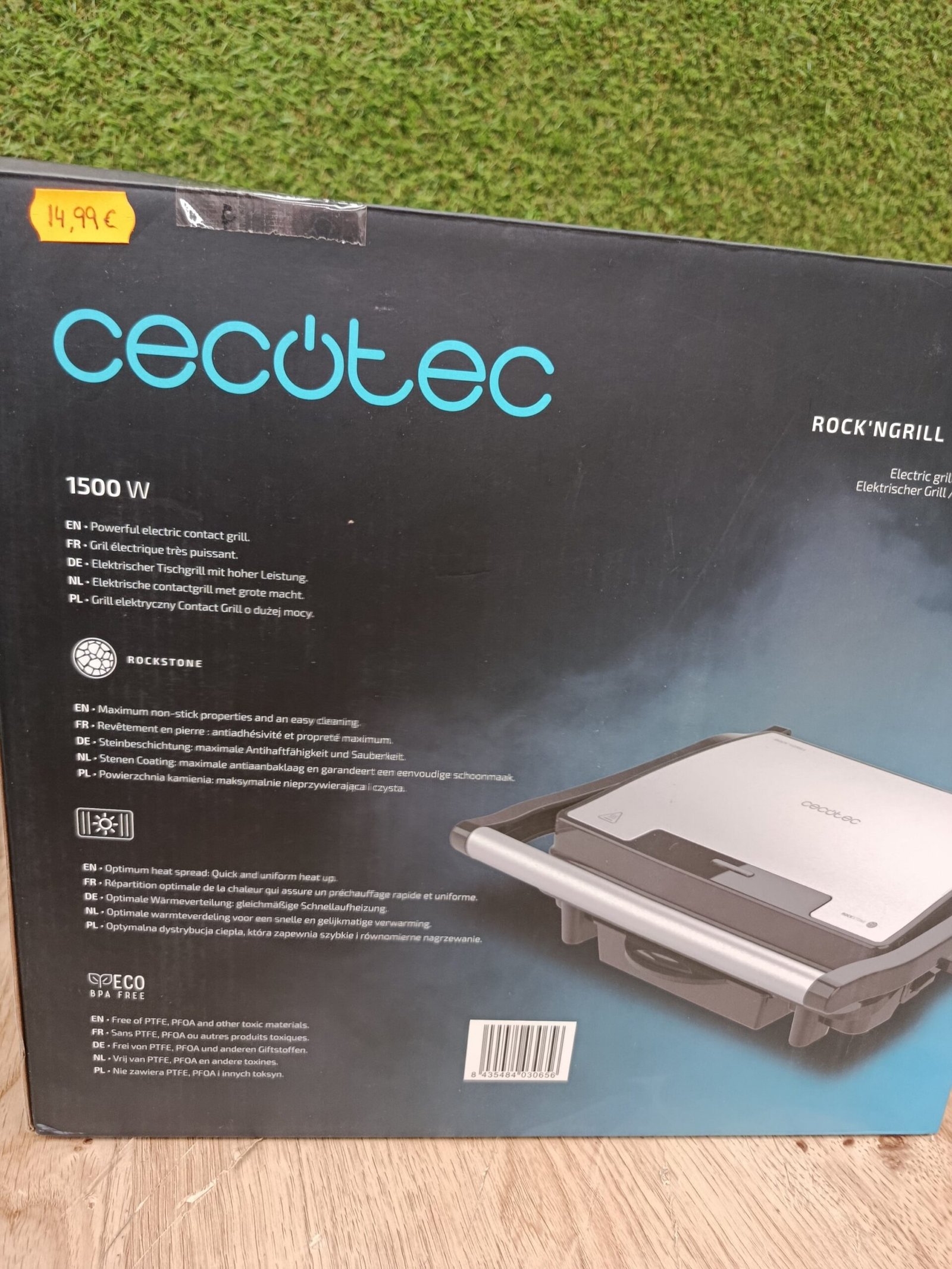 Cecotec Parrilla Eléctrica Rock’Ngrill 1500 Rapid, 1500 W, Revestimiento de Piedra Rockstone, Placa Superior Adaptable en Altura, Bandeja Recogegrasas, Revestimiento Ecológico, 12.4X30.8X33.2 Cm