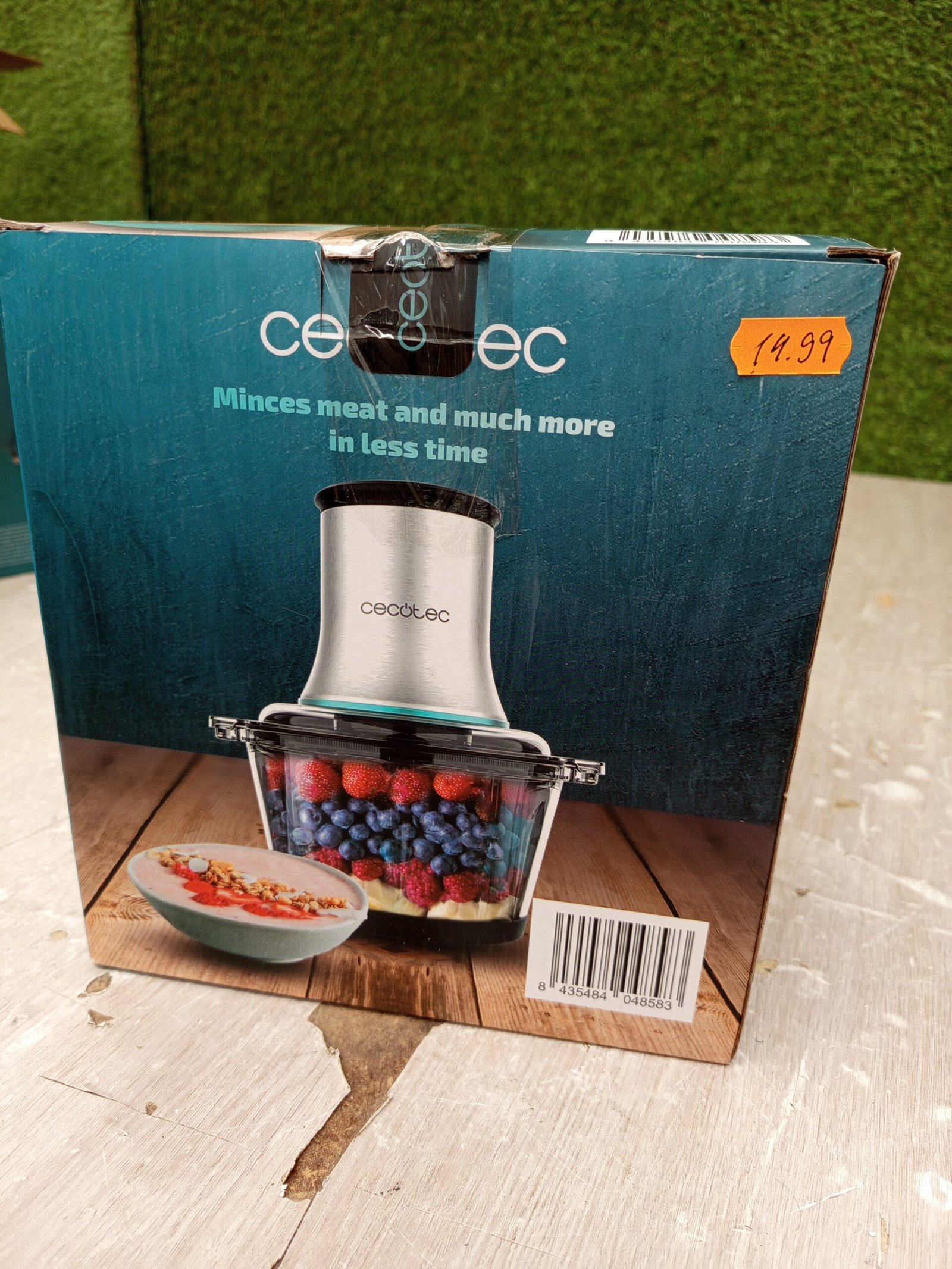 Cecotec Picadora ChopBeat 2000 Vindaloo Glass, 500W de Potencia, Pica, Trocea y Corta, Cuchilla de 4 Hojas de Acero Inoxidable, 2 Velocidades, Bol Cristal 500g