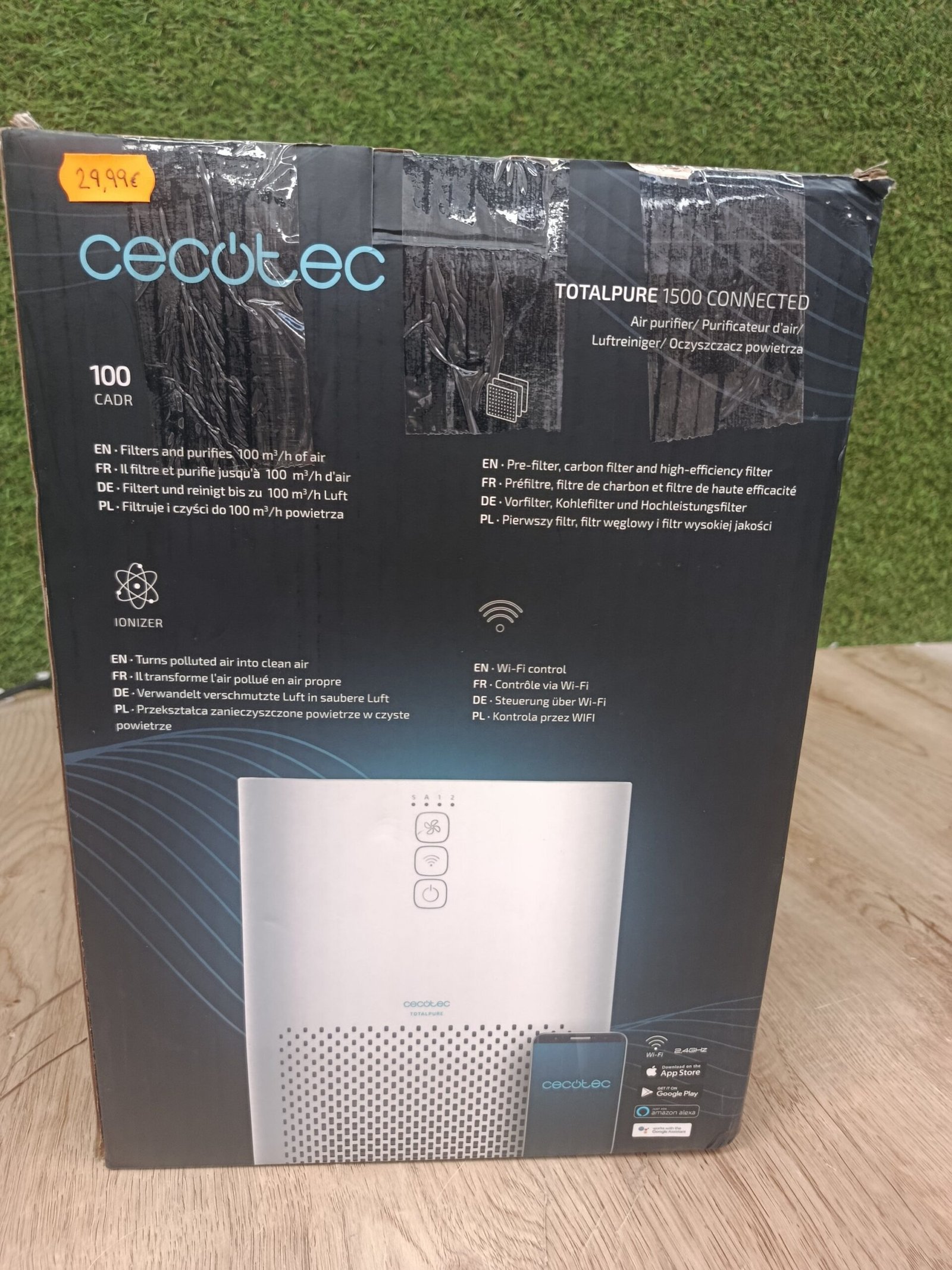 Cecotec Purificador de Aire TotalPure 1500 Connected. 26W, 100 CADR, HEPA, 3 Etapas de filtrado, Control por Wi-fi, 2 Modos de Funcionamiento, Sensor PM 2,5, Cobertura 40 m3 – Blanco