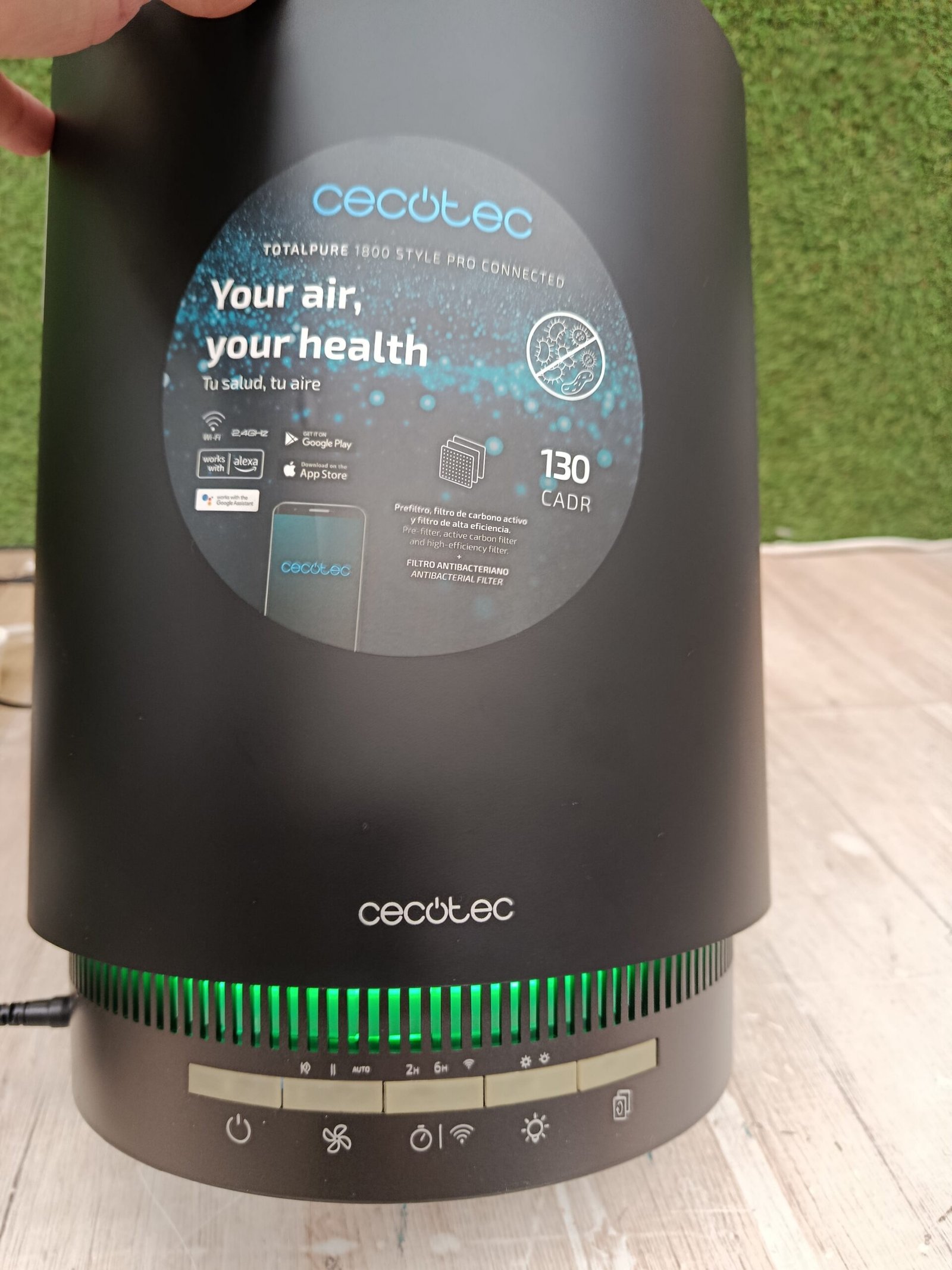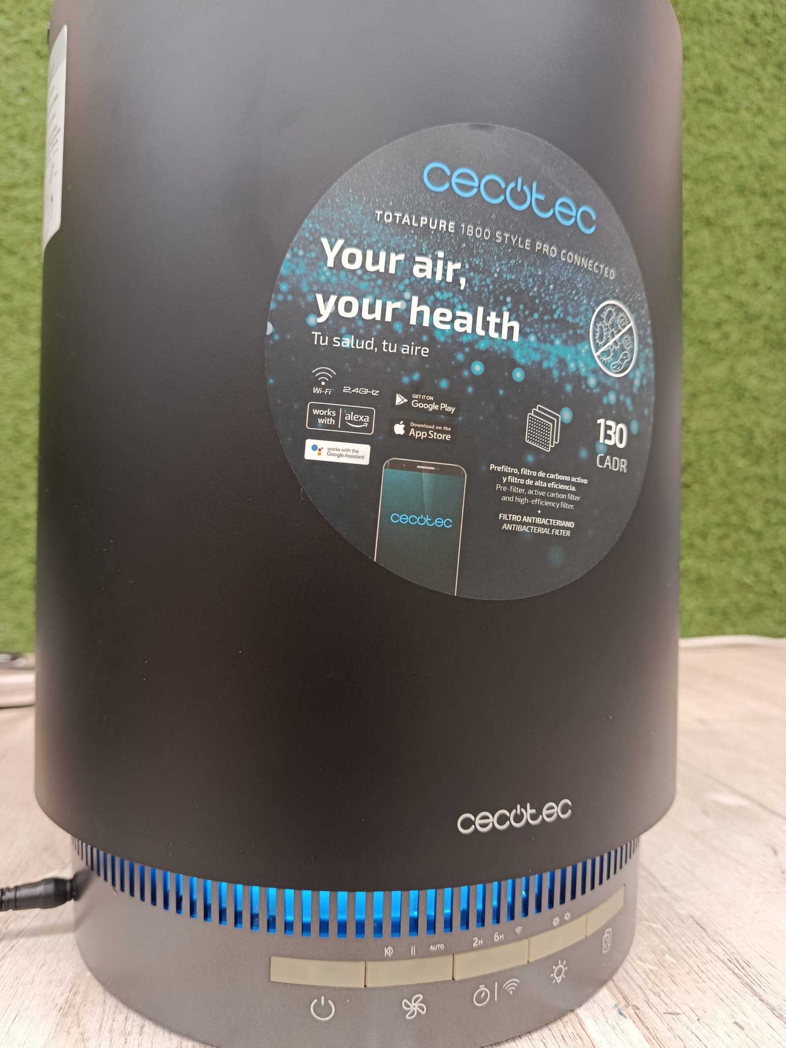 Cecotec Purificador de Aire Bajo Consumo TotalPure 1800 Style Pro Connected. Potencia 45 W, 130 CADR, 4 Etapas de filtrado, Control por Wi-Fi, Temporizador, Motor DC, Cobertura 40 m3