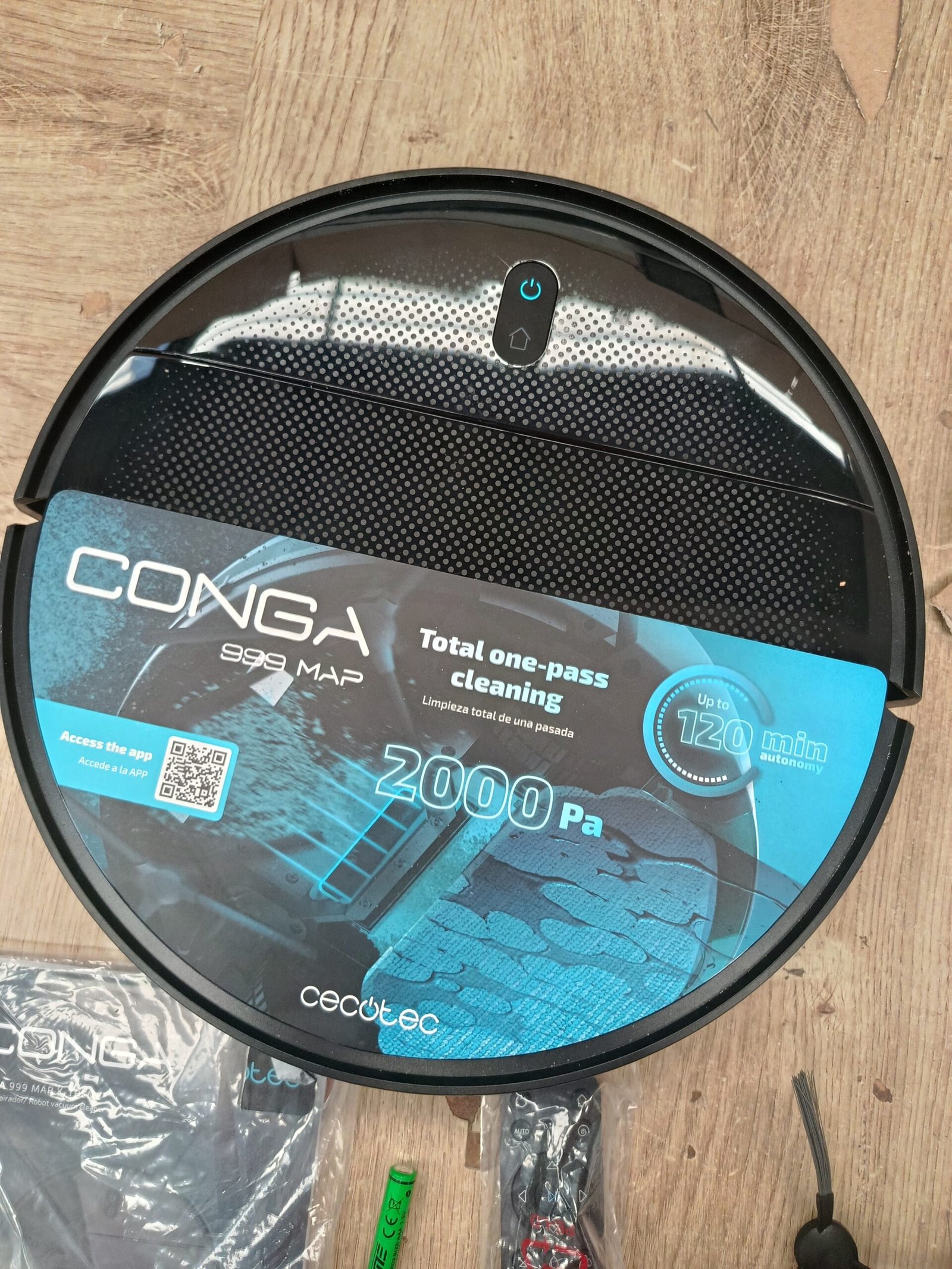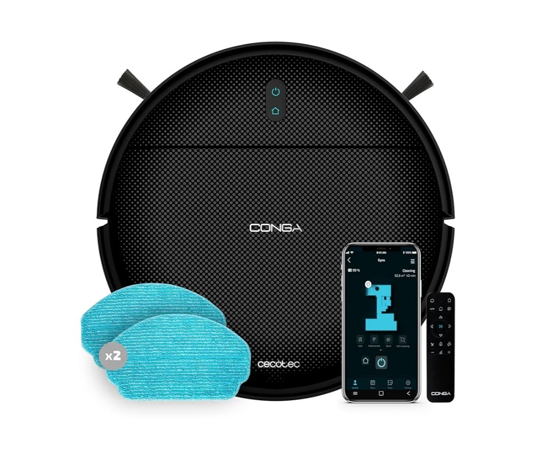 Cecotec Robot Aspirador con Navegación Giroscópica Conga 999 Map X-Treme. Motor de Succión 2000Pa, 2 Cepillos Laterales, 2 Mopas de Fregado, Autonomía 120 mins, Control con App y Mando