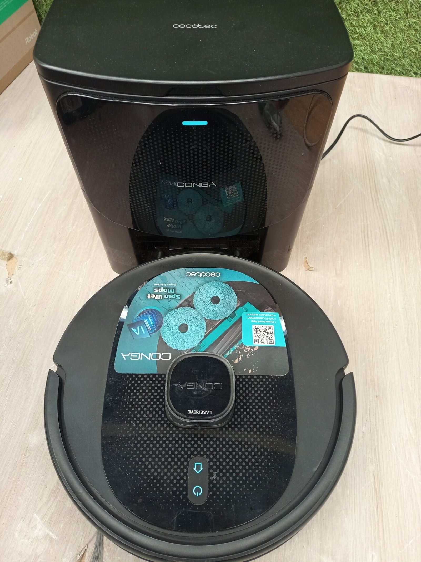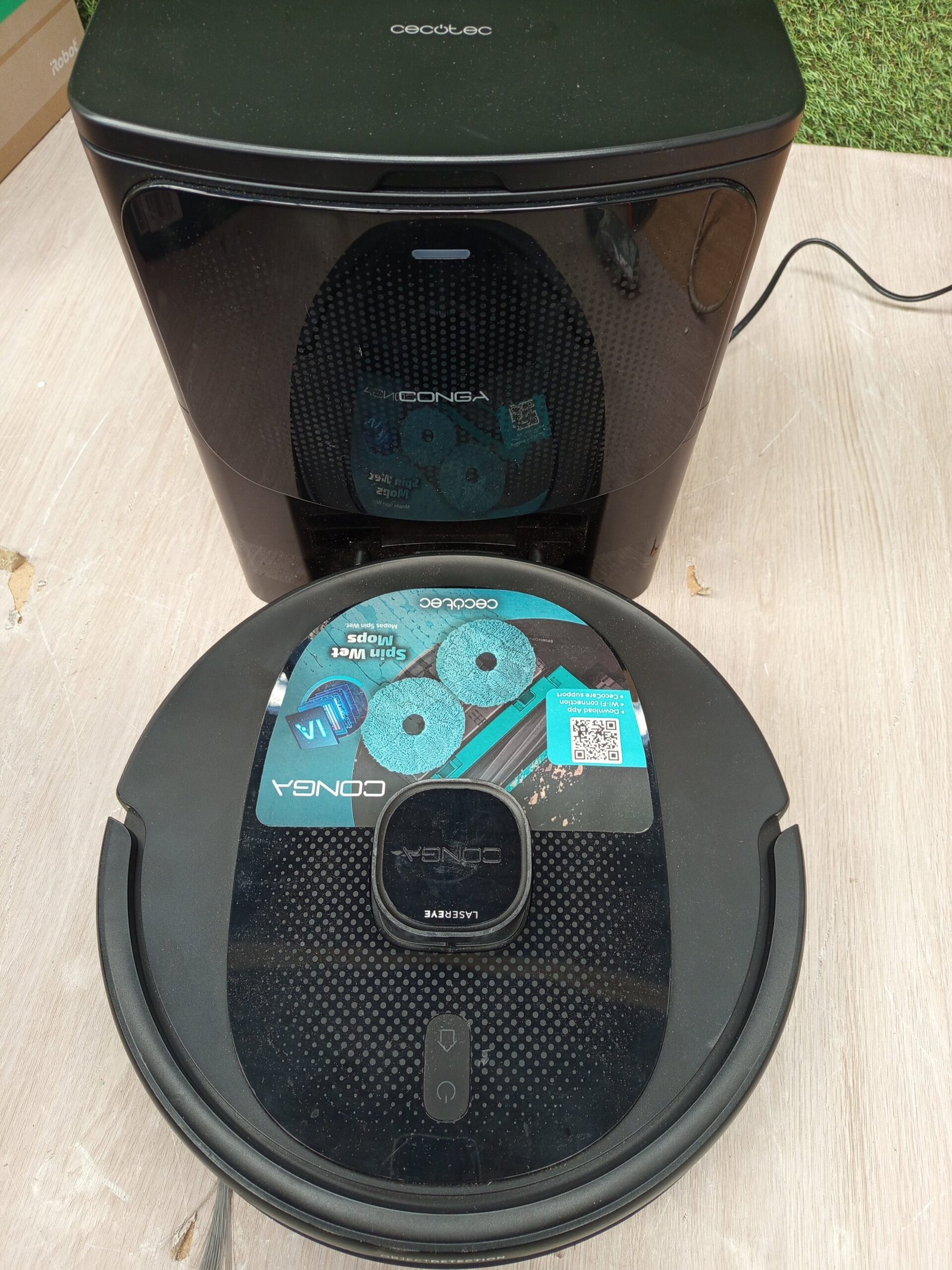 Cecotec Robot Aspirador Conga 9990 AI Spin Revolution Ultra Power Home, 10.000 Pa, Navegación láser, Base de autovaciado, Inteligencia Artificial, Evita Objetos, Control App, 240 min Autonomía