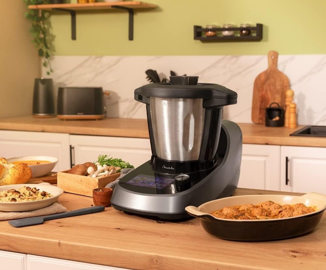 Robot de cocina multifunción con 37 funciones: trocea, pica, licua, tritura, sofríe, muele, pulveriza, ralla, recalienta, bate, yogurtera, monta, emulsiona, mezcla, cocina, remueve, cocina al vapor, escalfa, confita, amasa, cocina a baja temperatura, hierve, mantiene caliente, fermenta, SlowMambo