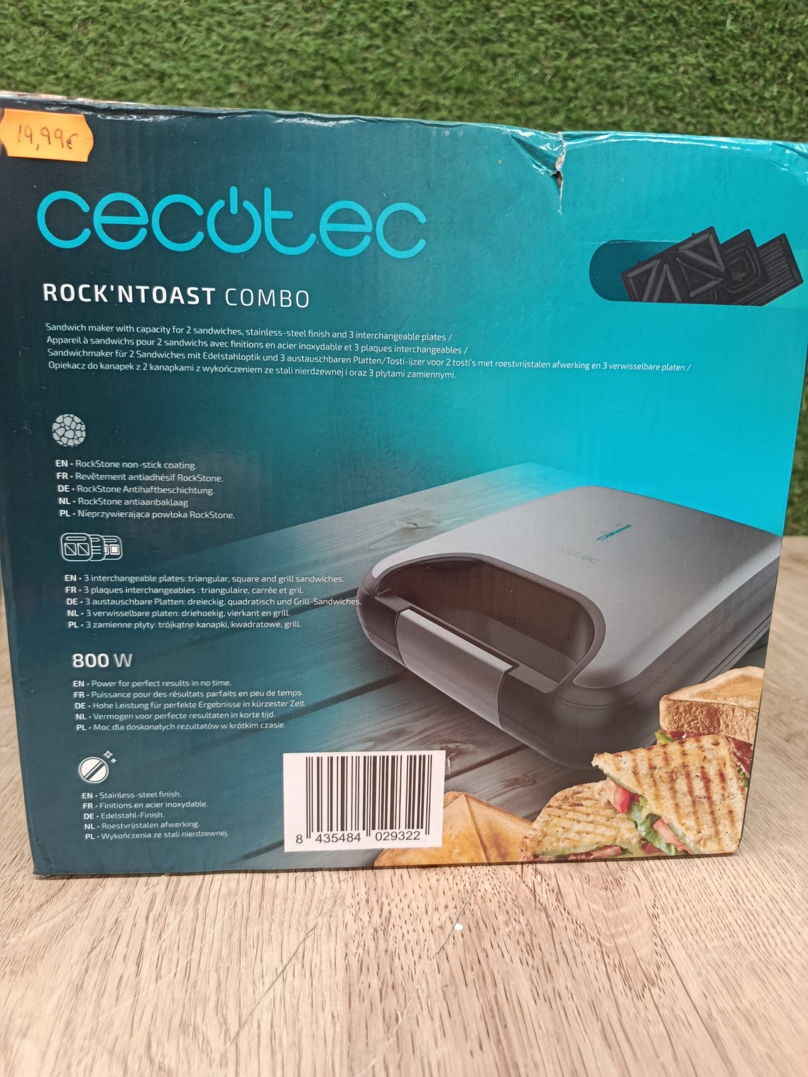 Cecotec Sandwichera Rock’nToast Combo. 800 W, 2 Sándwiches con Acabados en Acero Inoxidable, 3 Placas Intercambiables con Revestimiento Antiadherente, Libre de PFOA, Asa Tacto Frío