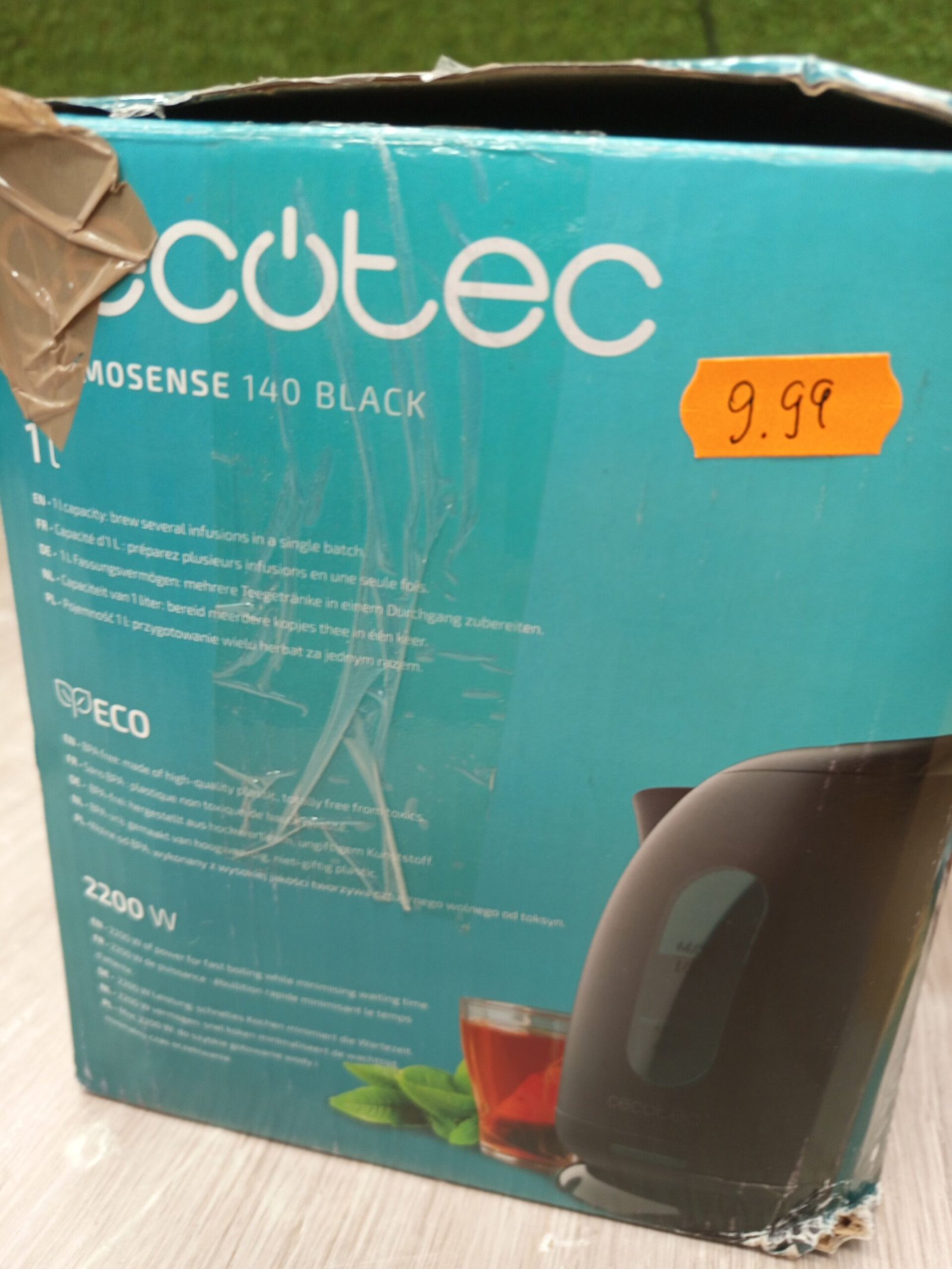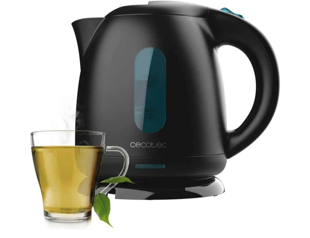 Cecotec Thermosense 140 Black Electric Kettle (1L). 2200W Fast Boil, BPA-Free, Anti-Limescale Filter, 360º Base, Cordless Jug