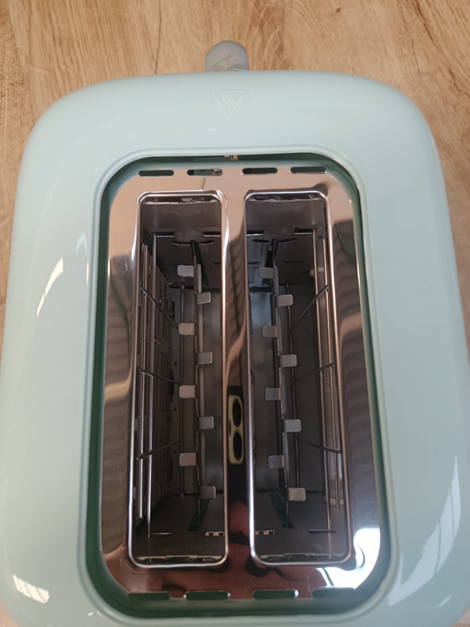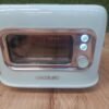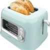 La tostadora tiene un diseño retro en azul que la hace lucir elegante y moderna en cualquier cocina.