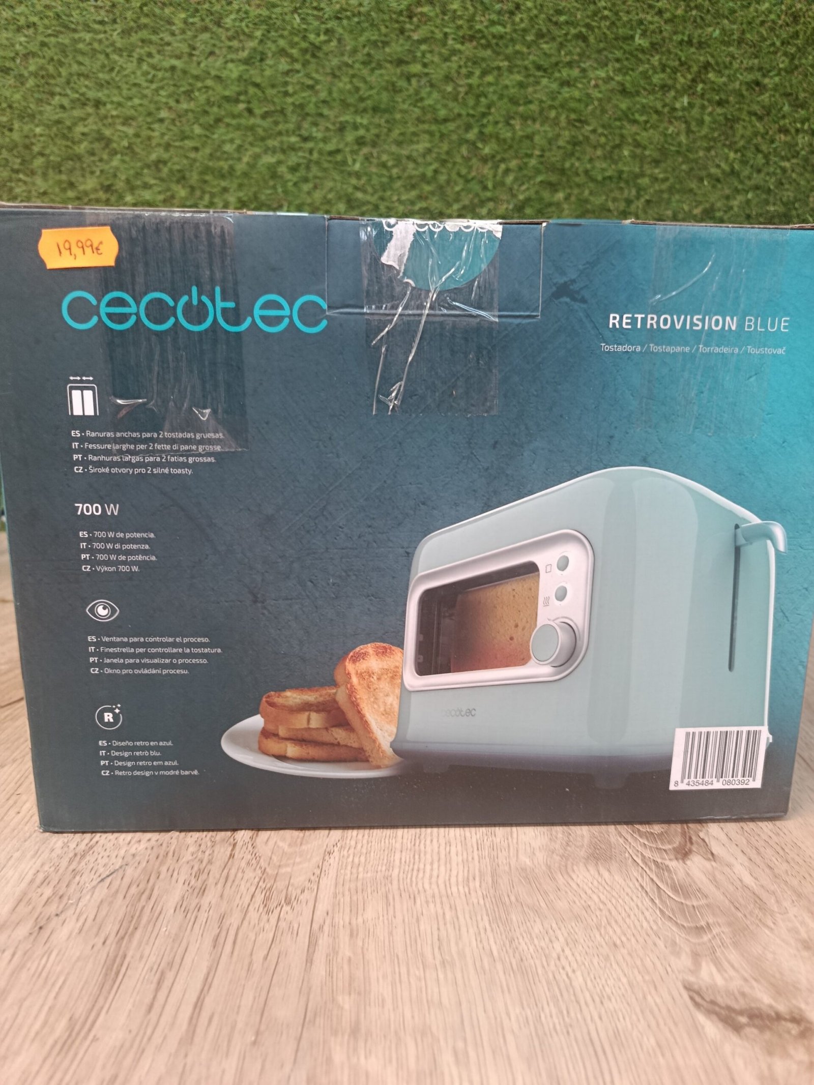 Cecotec Tostadora Vertical 2 Ranuras Anchas RetroVision Blue. 700 W en 5 Niveles, 2 Rebanadas de Pan, Ventana de Control, Diseño Retro, Cubierta antipolvo, Apagado y Pop-up Automático