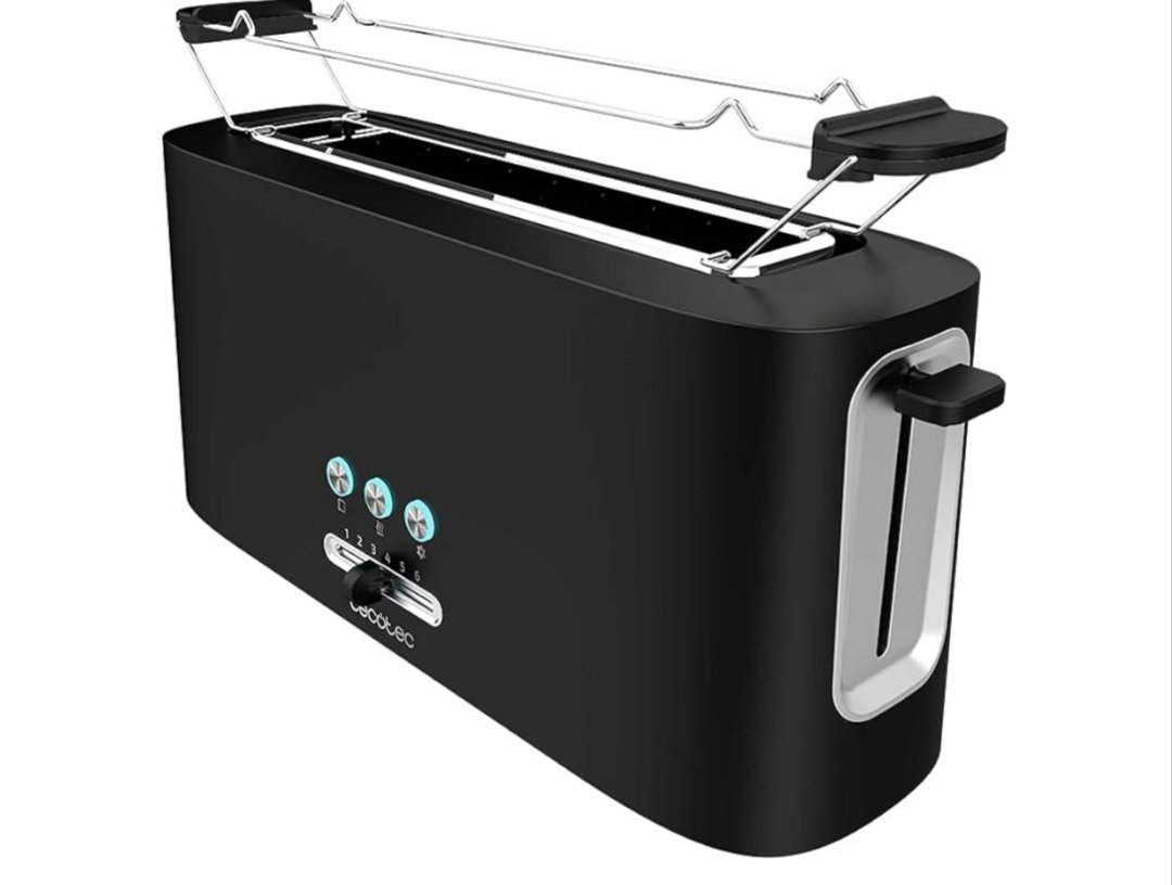 Cecotec Tostadora Vertical Toast&Taste 10000 Extra. 980 W, Ranura larga extraancha, 3 Funciones preconfiguradas, Diseño en plástico con acabados en acero inox, Incluye Varillas superiores