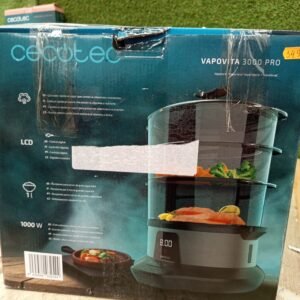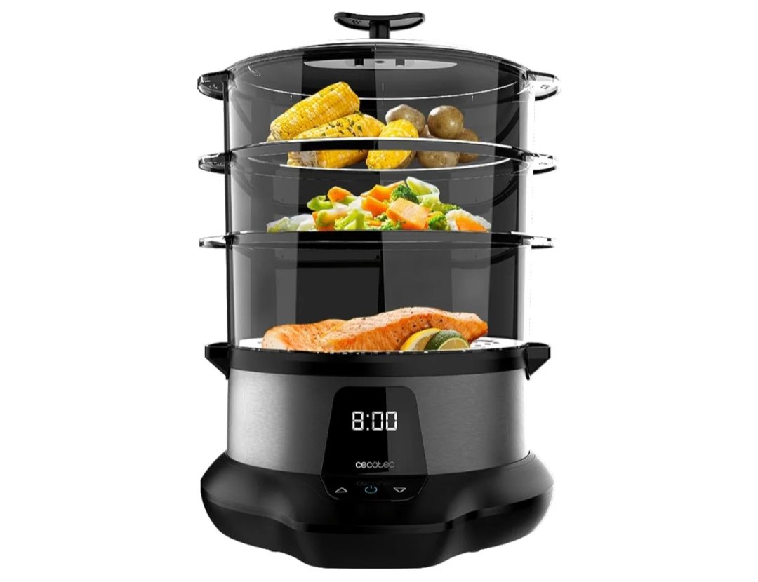 Cecotec Vaporera Eléctrica VapoVita 3000 Pro. Cocina al Vapor y Conserva Nutrientes y Vitaminas. 1000W, Digital, Incluye 3 Recipientes, Cuenco para arroz 1L, Piezas no Eléctricas Aptas Lavavajillas