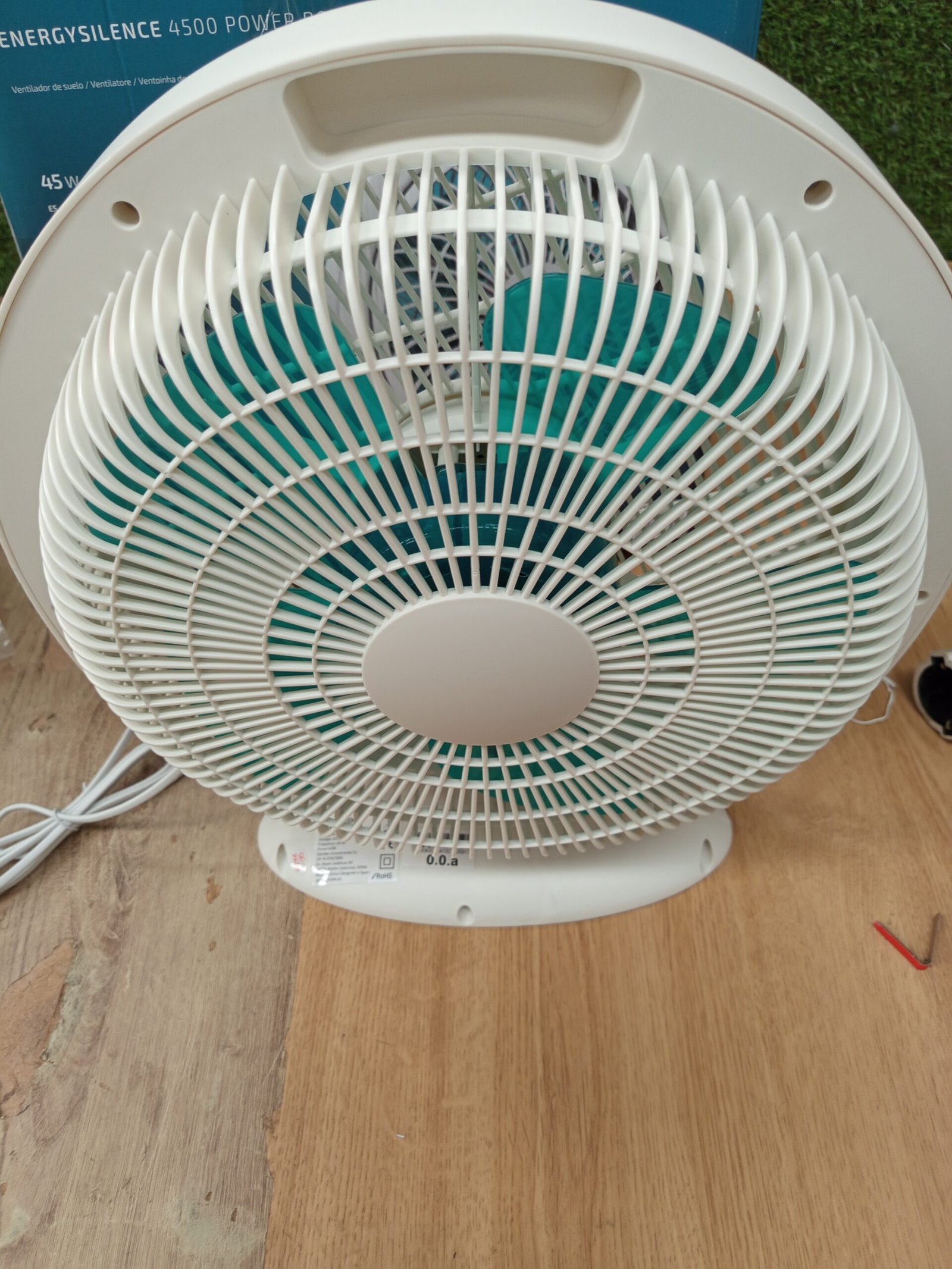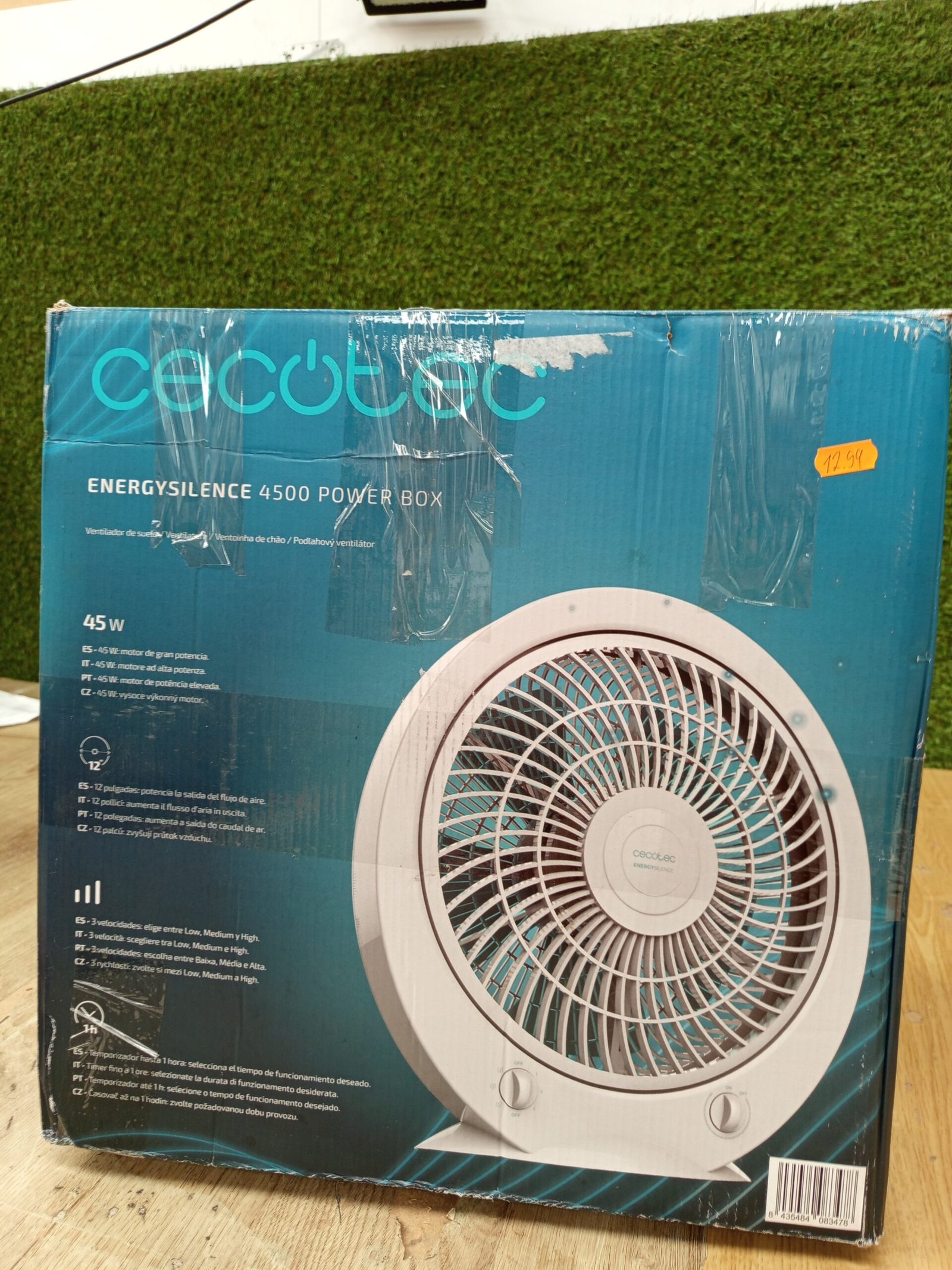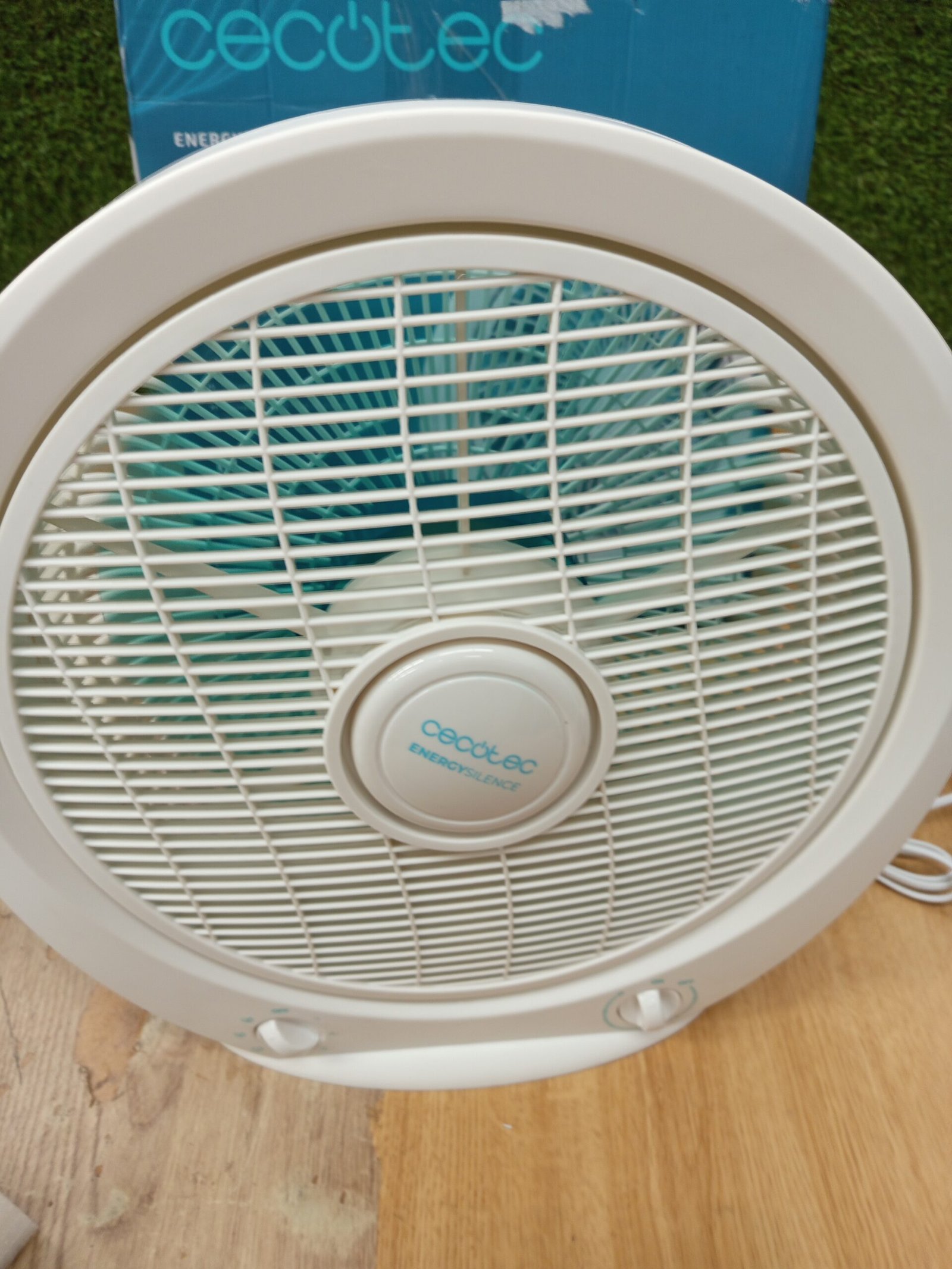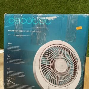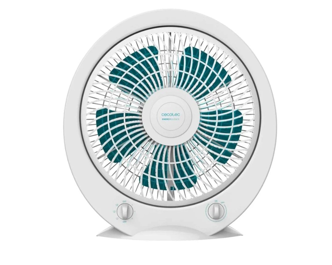 Cecotec Ventilador de Suelo Cuadrado Box Fan EnergySilence 4500 Power Box, 45 W, Diámetro 12 Pulgadas, 5 Aspas, 3 Velocidades, Temporizador 1h, Rejilla Giratoria y Máxima Seguridad, Blanco, Redondo