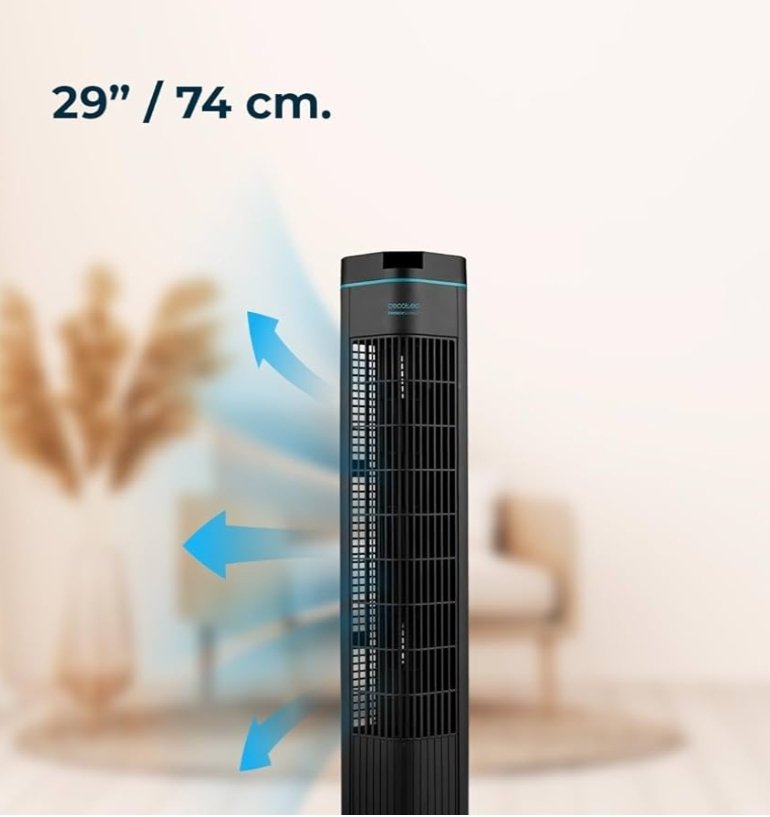 Cecotec Ventilador de Torre EnergySilence 690 Skyline de 29″, 50 W de potencia, De pie, 3 Modos y 3 Velocidades, Temporizador 8h, Oscilación 90º