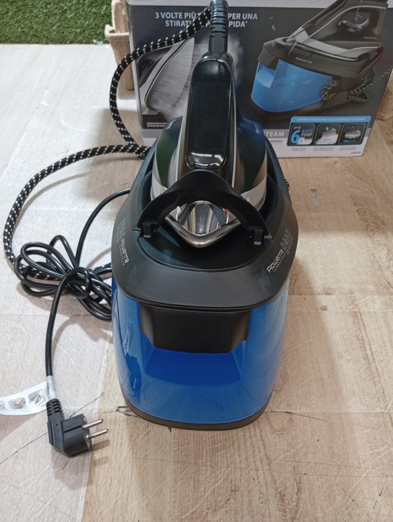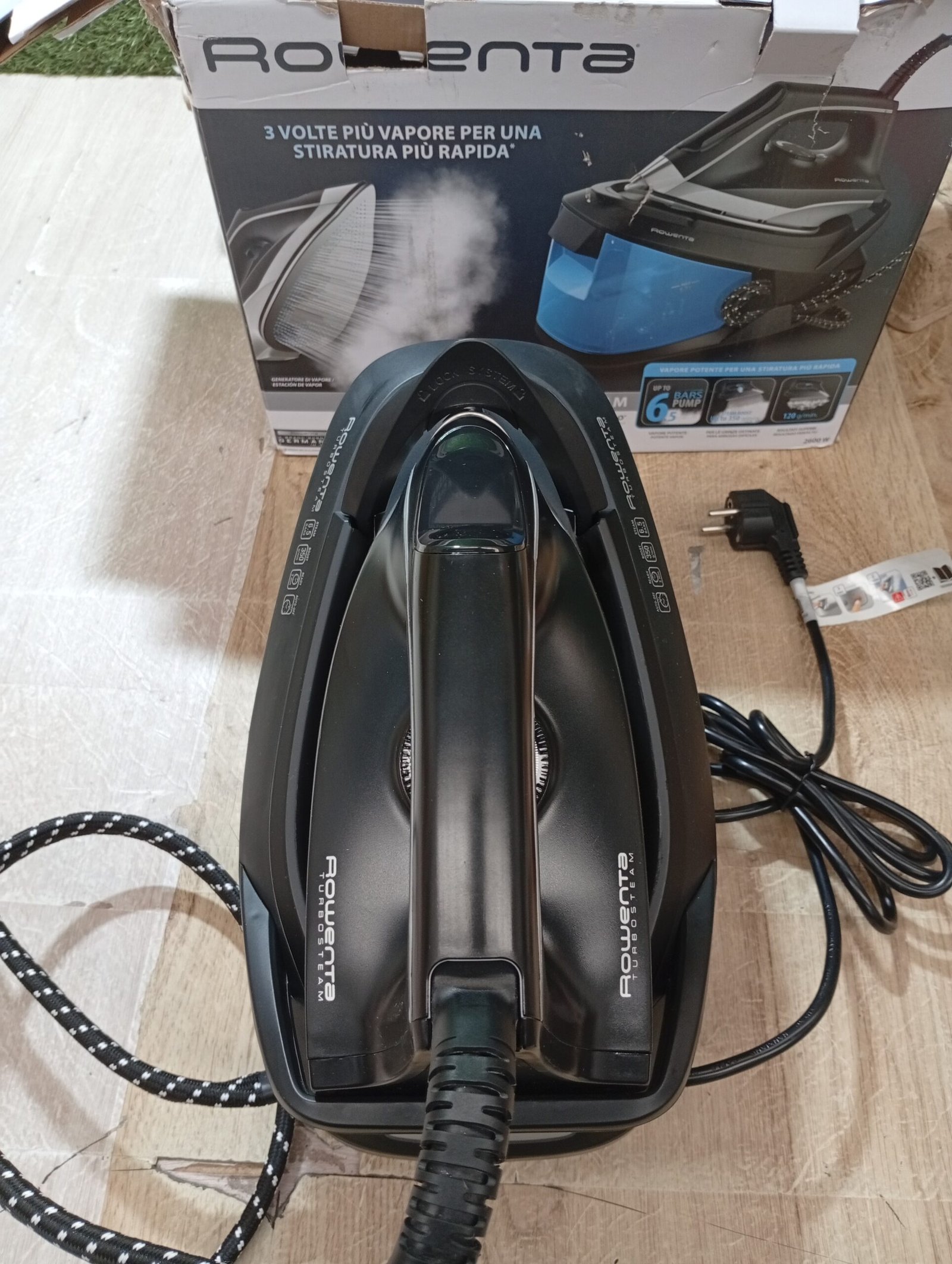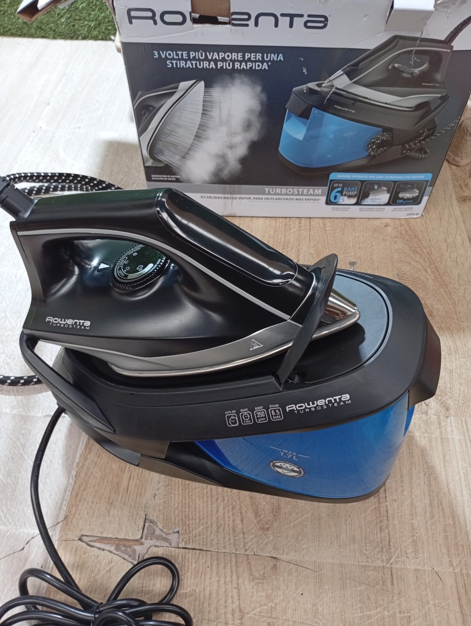 Rowenta Turbosteam VR8320 Centro de planchado 6,5 bares, golpe vapor 350 g/m, suela MiscroSteam 400, sistema de bloqueo para transportar con una mano, sistema antical, modo Eco, depósito agua 1,7 L