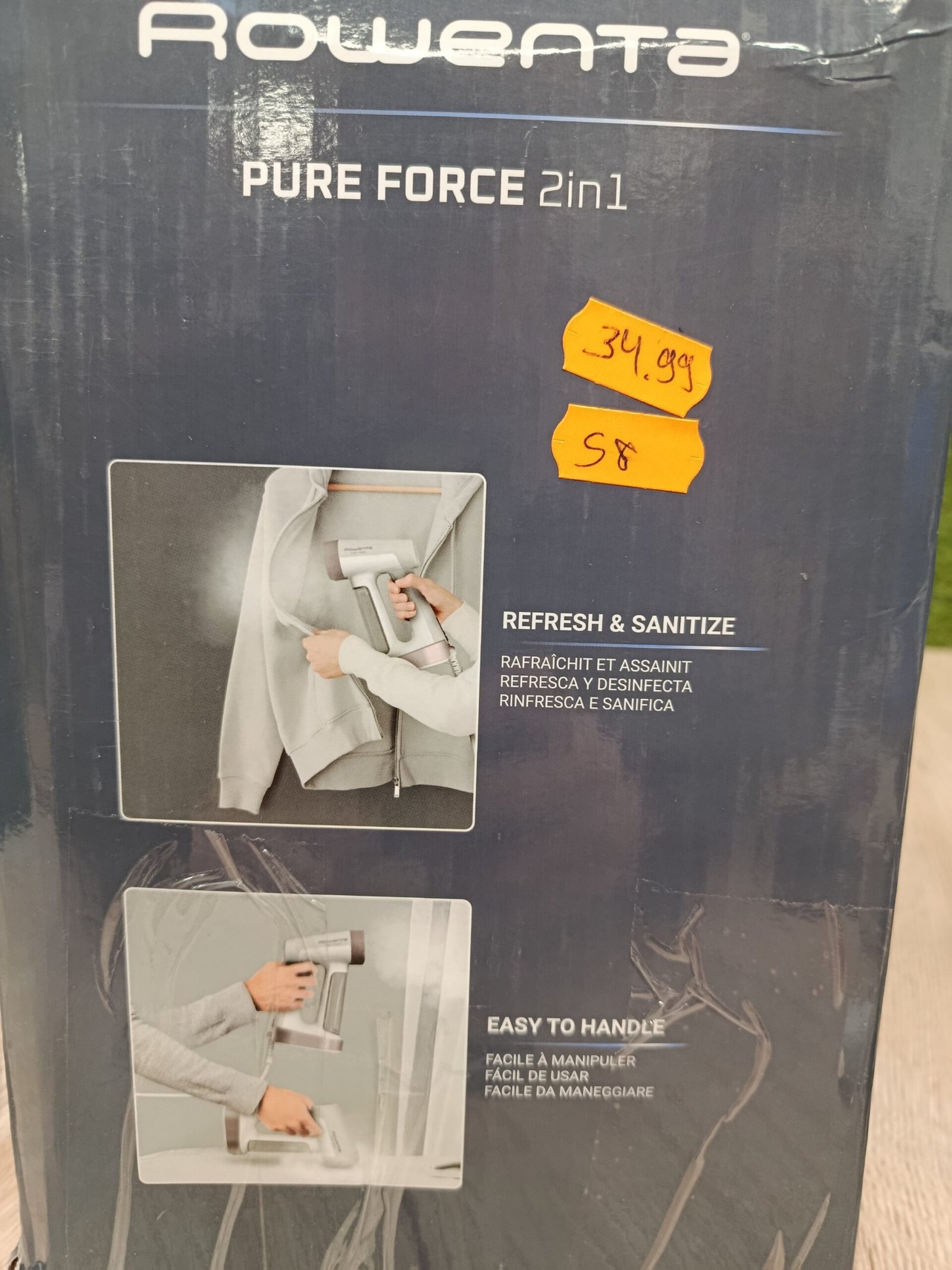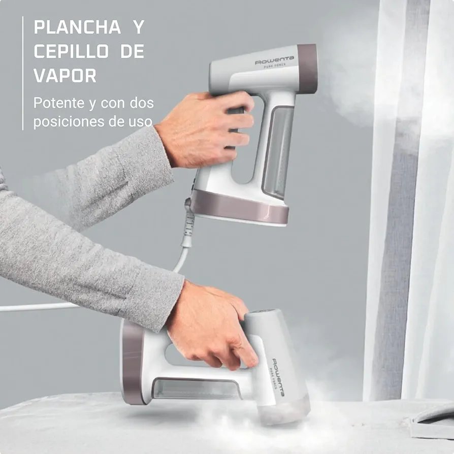 Rowenta Pure Force, Cepillo de vapor y plancha 2 en 1, Uso vertical/horizontal, Vapor potente, Se calienta en 25s, Depósito de agua extraíble de 180ml, Elimina hasta el 99,99% de bacterias, DR8720F0